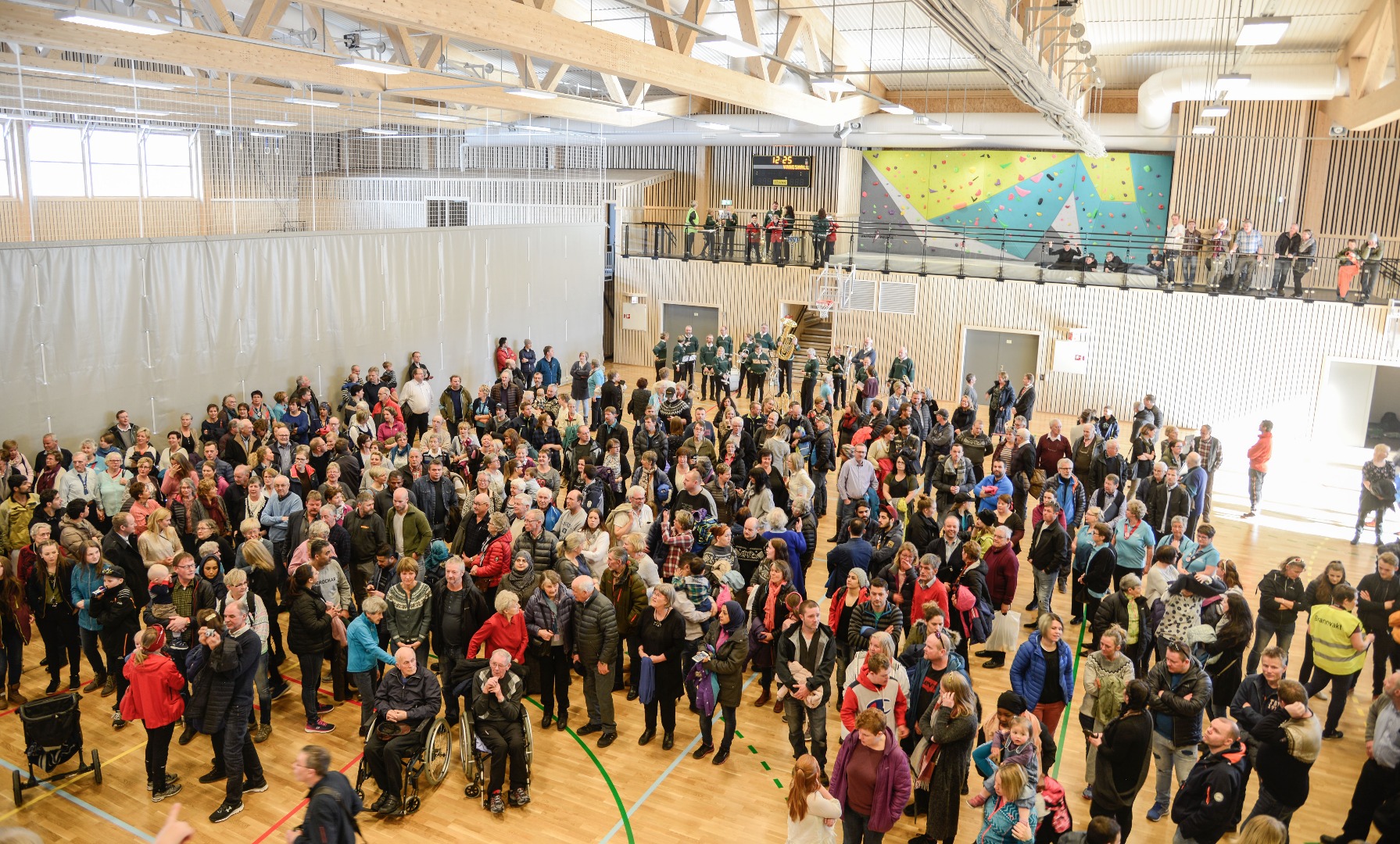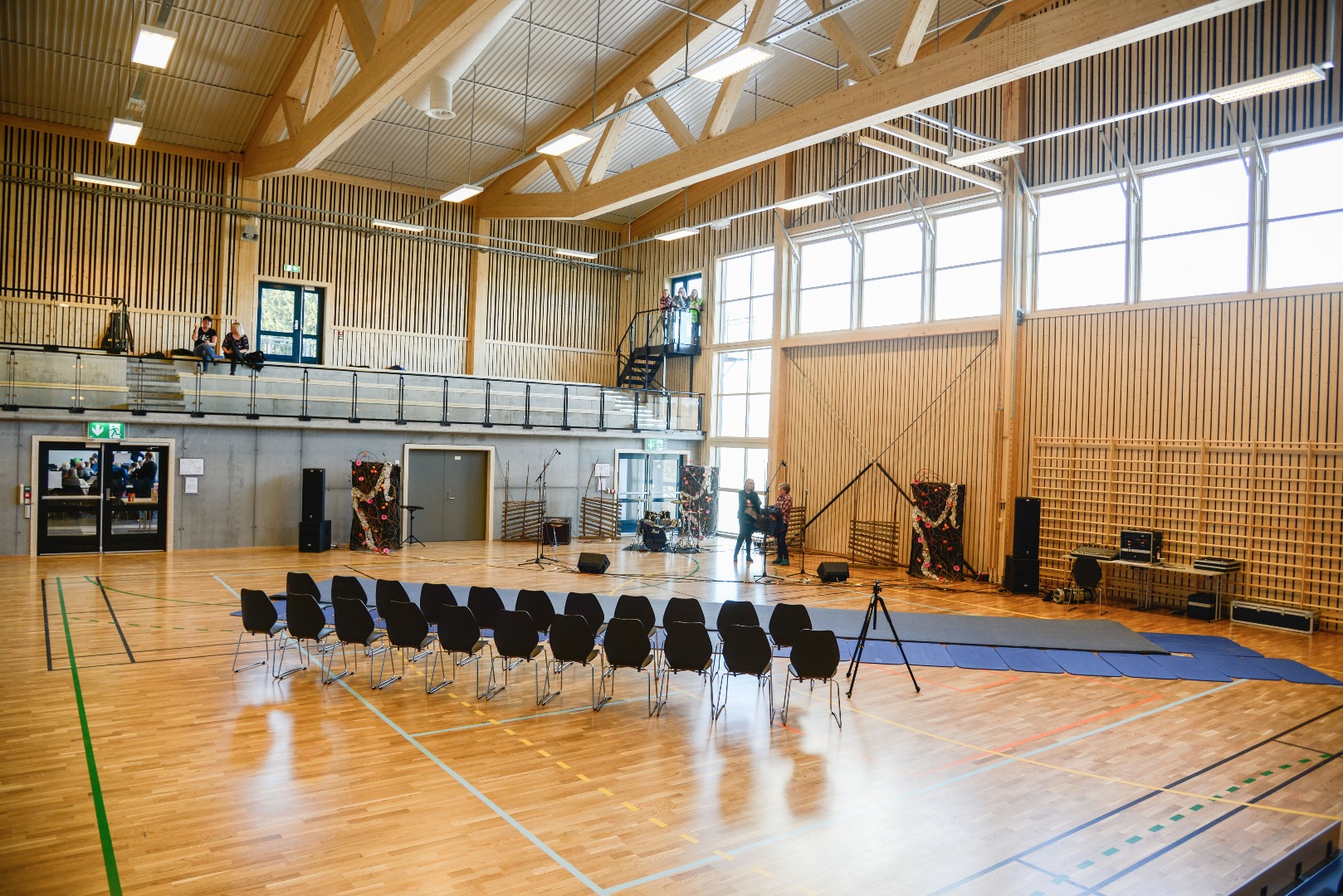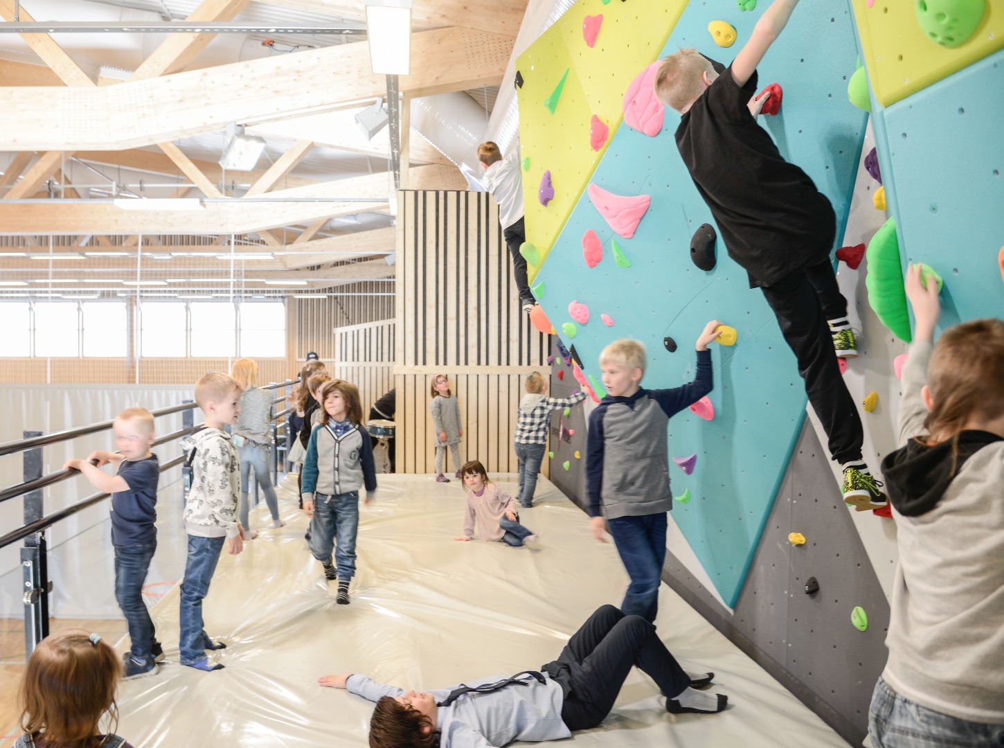 Med full handballbane, klatrevegg, amfi, tribune og festsal er Vangshallen ein nybygd motor i det aktive fritidstilbodet i Vang.