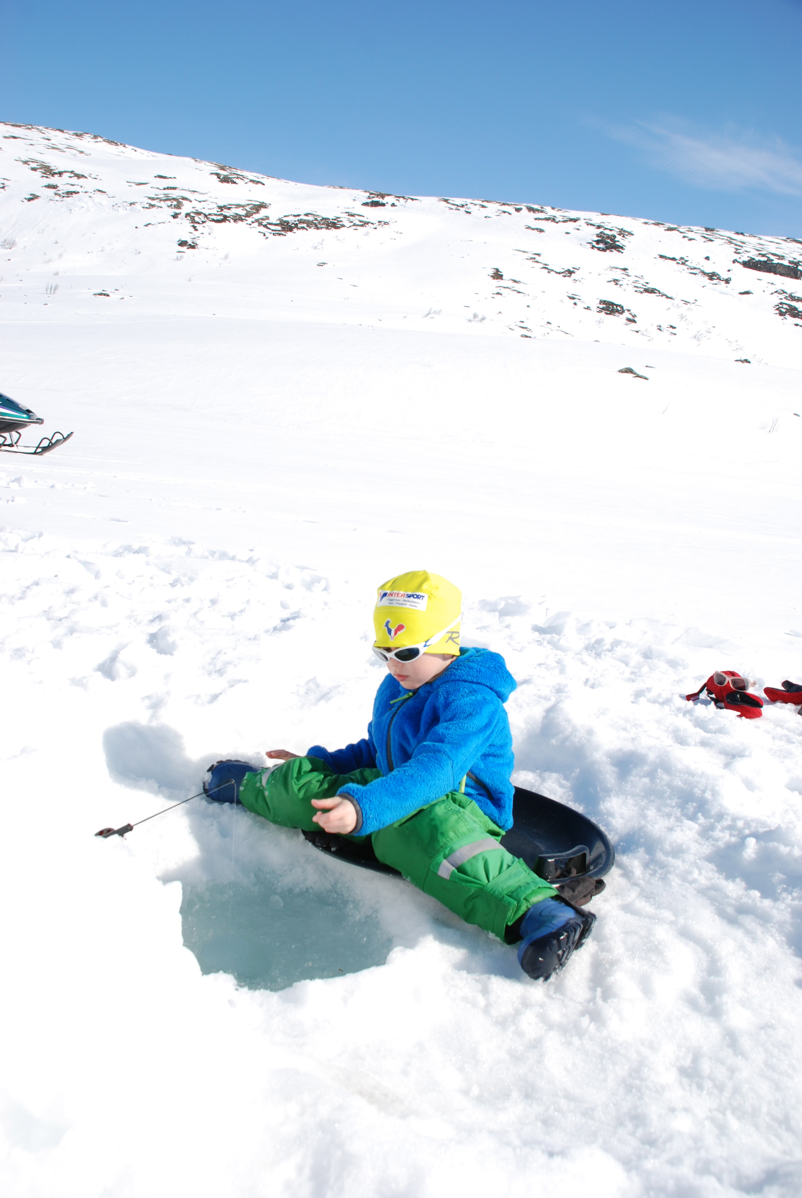 Eit tips for dei mindre fjellvatna er å ha forlenging på boret, då isen kan verta særs tjukk. Hugs også spade for å måke vekk snø.