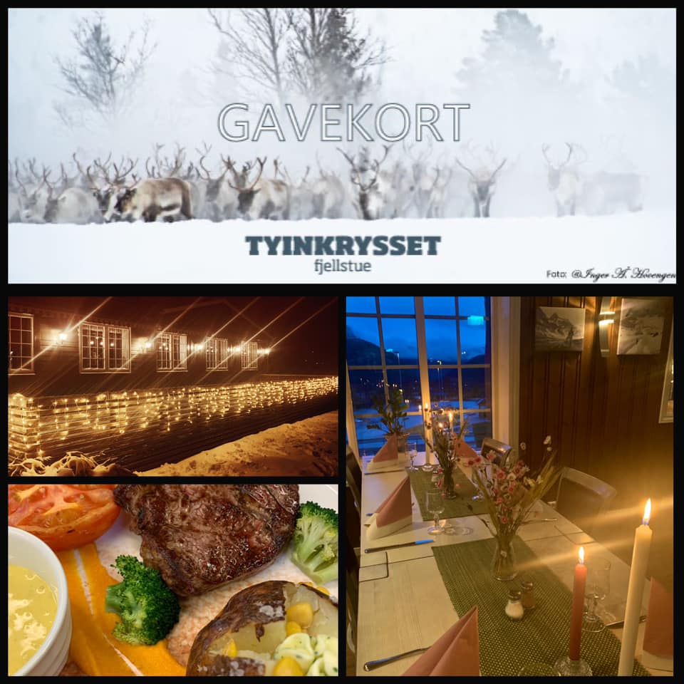 - Kjøp eit gåvekort på middag - dei fleste serveringsplassar i Vang tilbyr det. Send bestilling via e-post eller slå på tråden. Sjå til dømes korleis Tyinkrysset fjellstue løyser det.