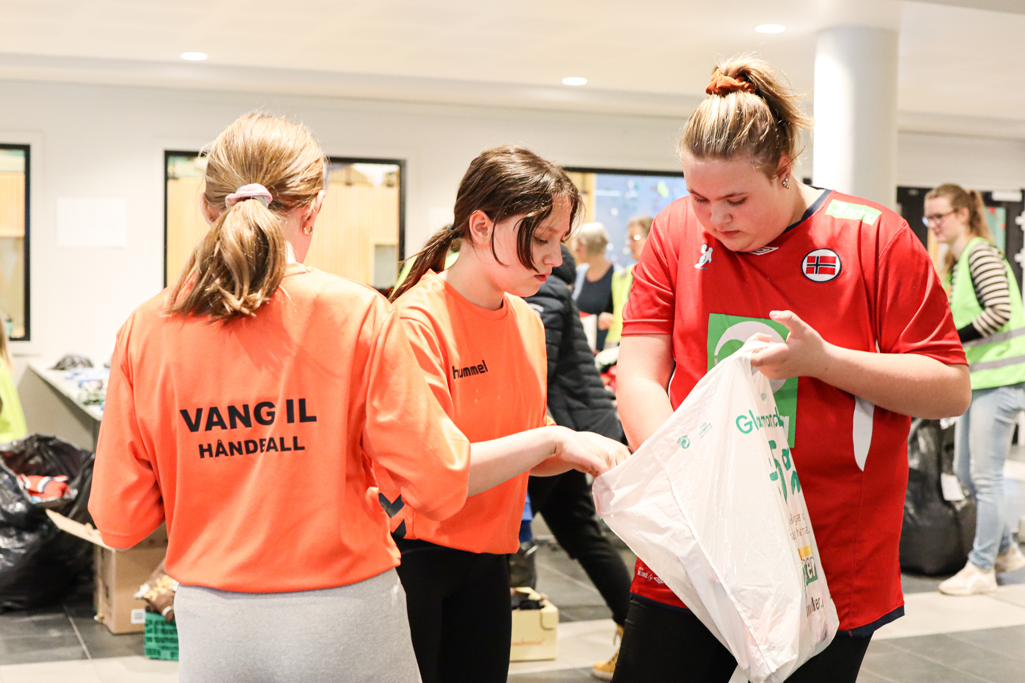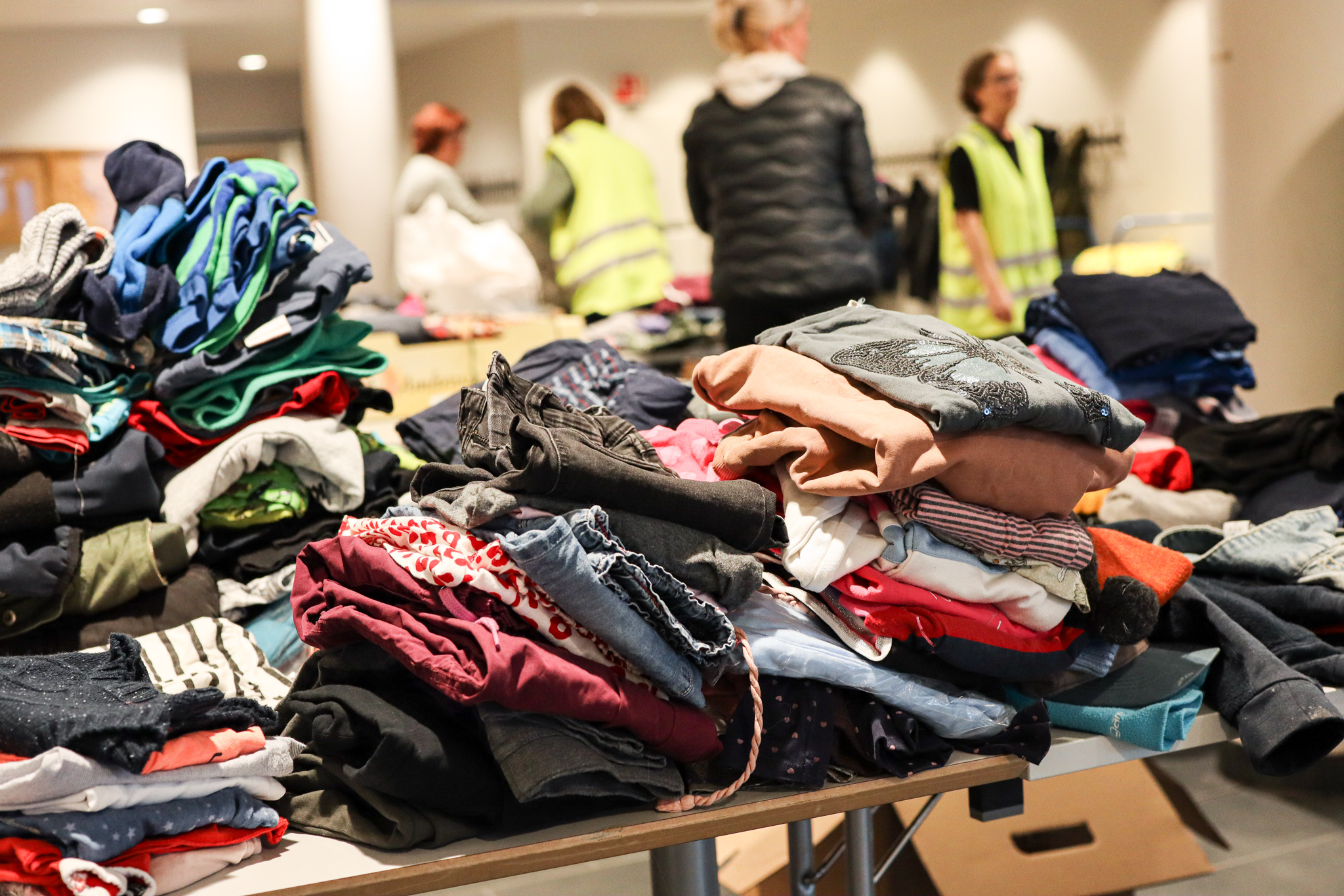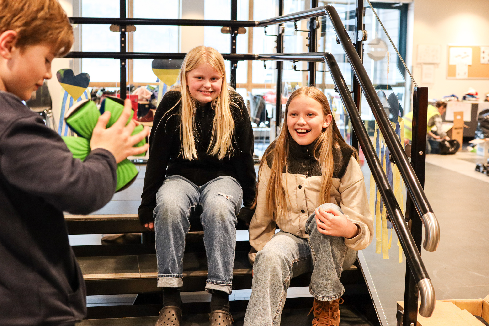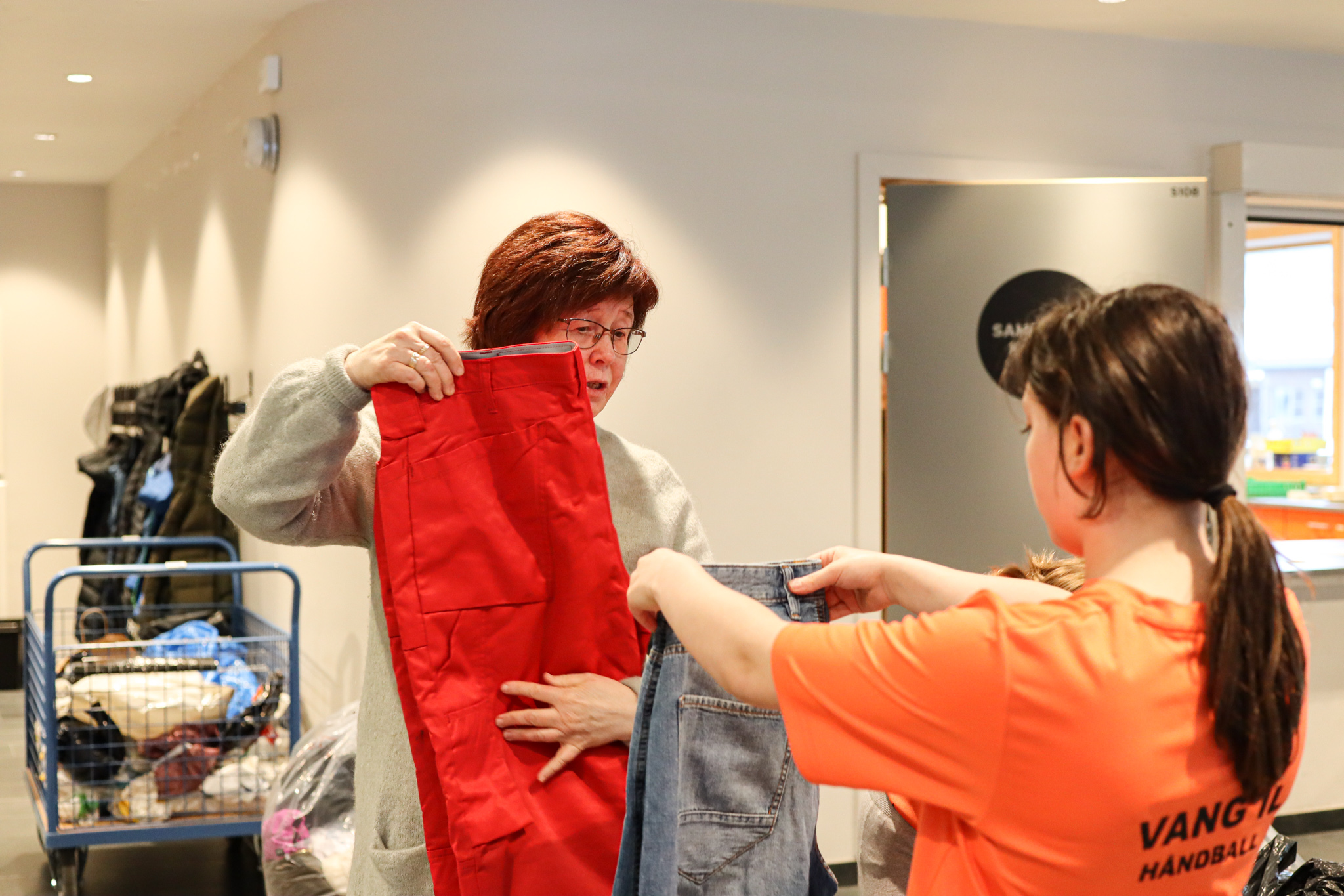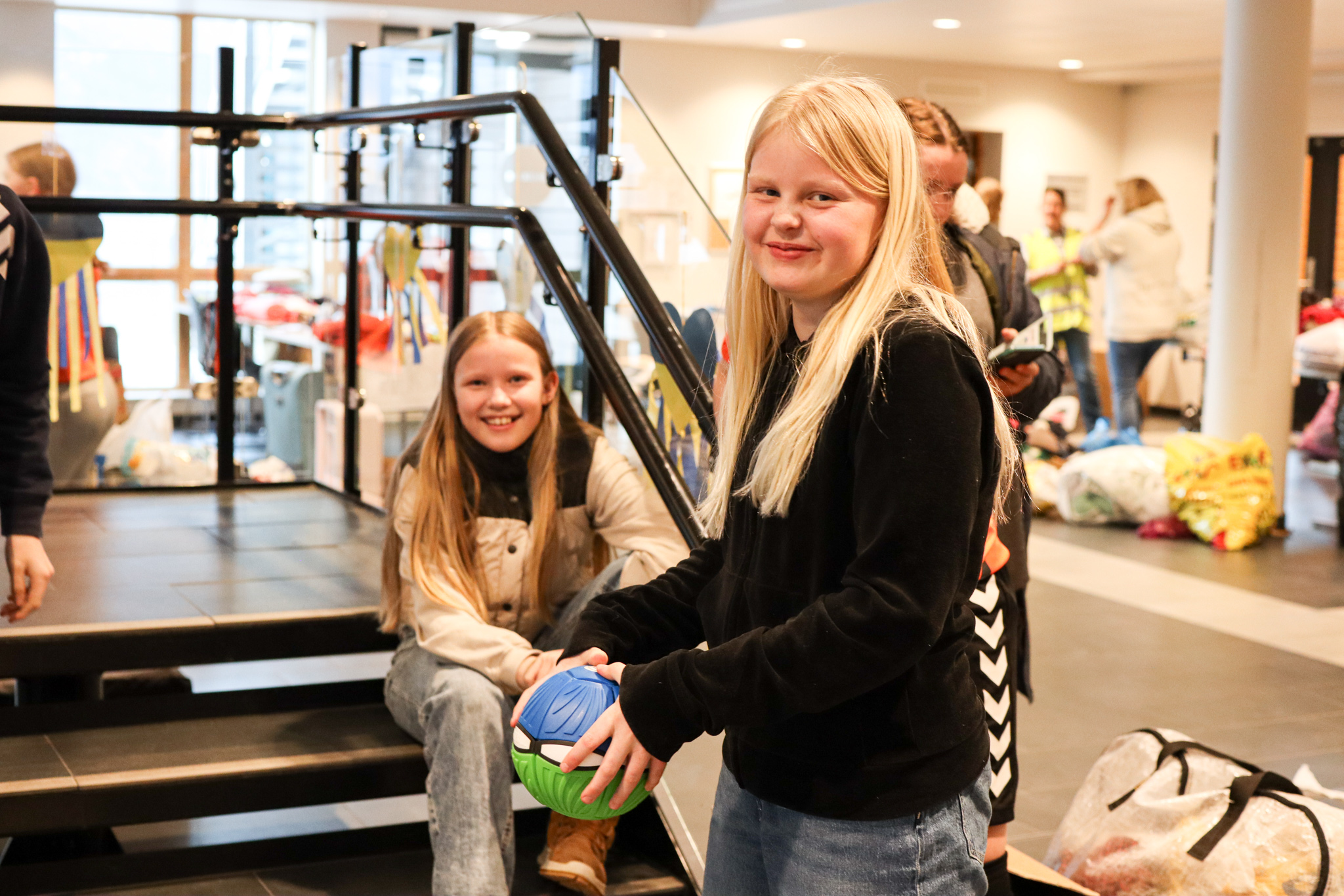 Inngangsdøra stod knapt stille denne ettermiddagen. Pose på pose med kleder fylte seg opp, leiker og utstyr rulla inn på bordene i foajeen på skulen. Eit heilt storstilt apparat vart sett i sving for å brette, sortere og pakke alt i ulike kategoriar og størrelser. Bamser, dukker, spel og trehjulssykler i lange baner. Hjelpande hender i alle kriker og kroker, blide fjes og høgt arbeidstempo.