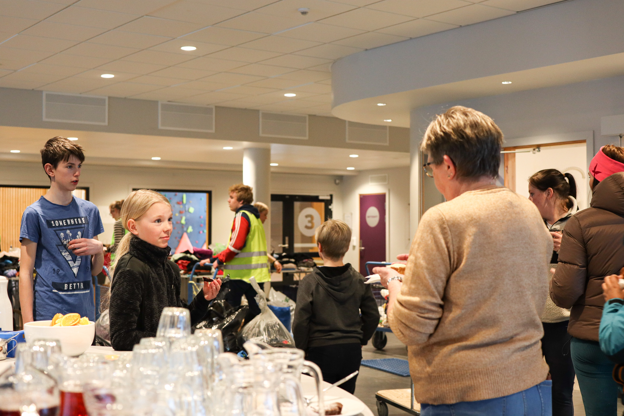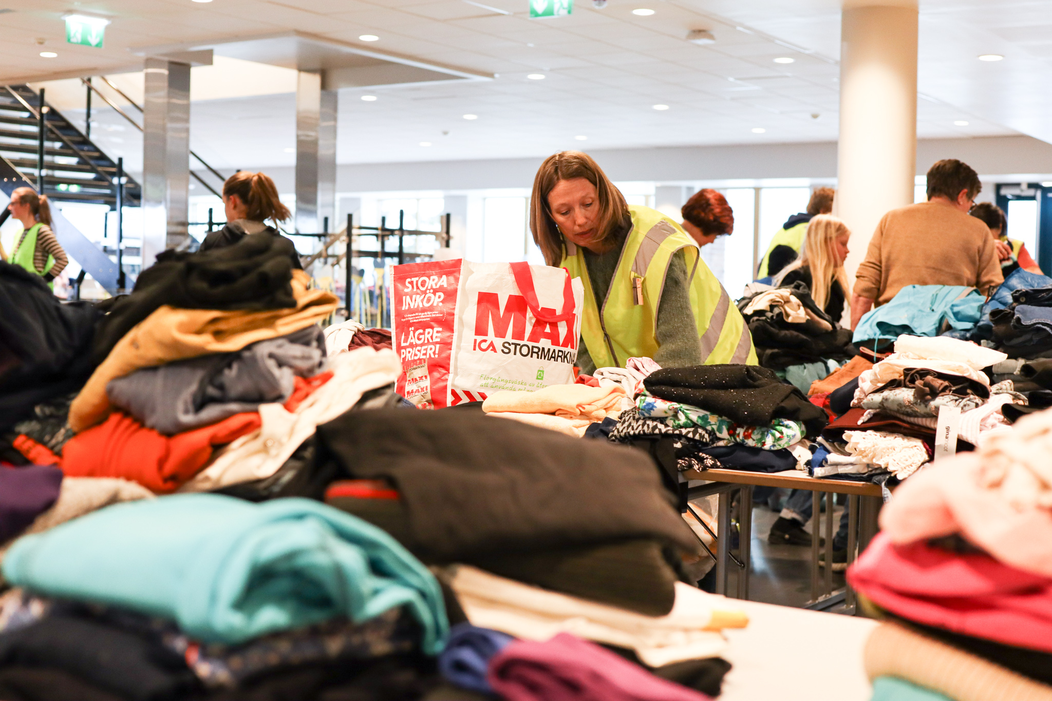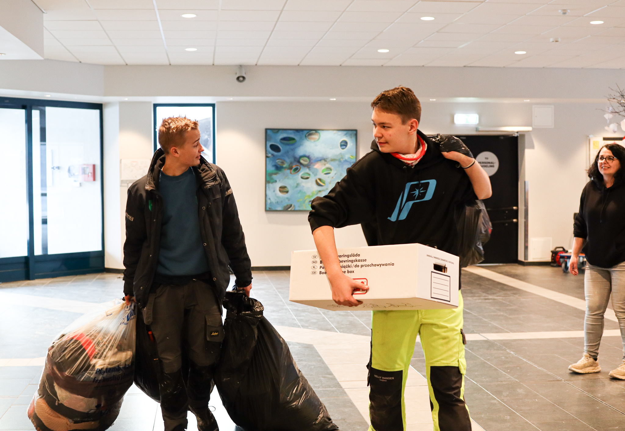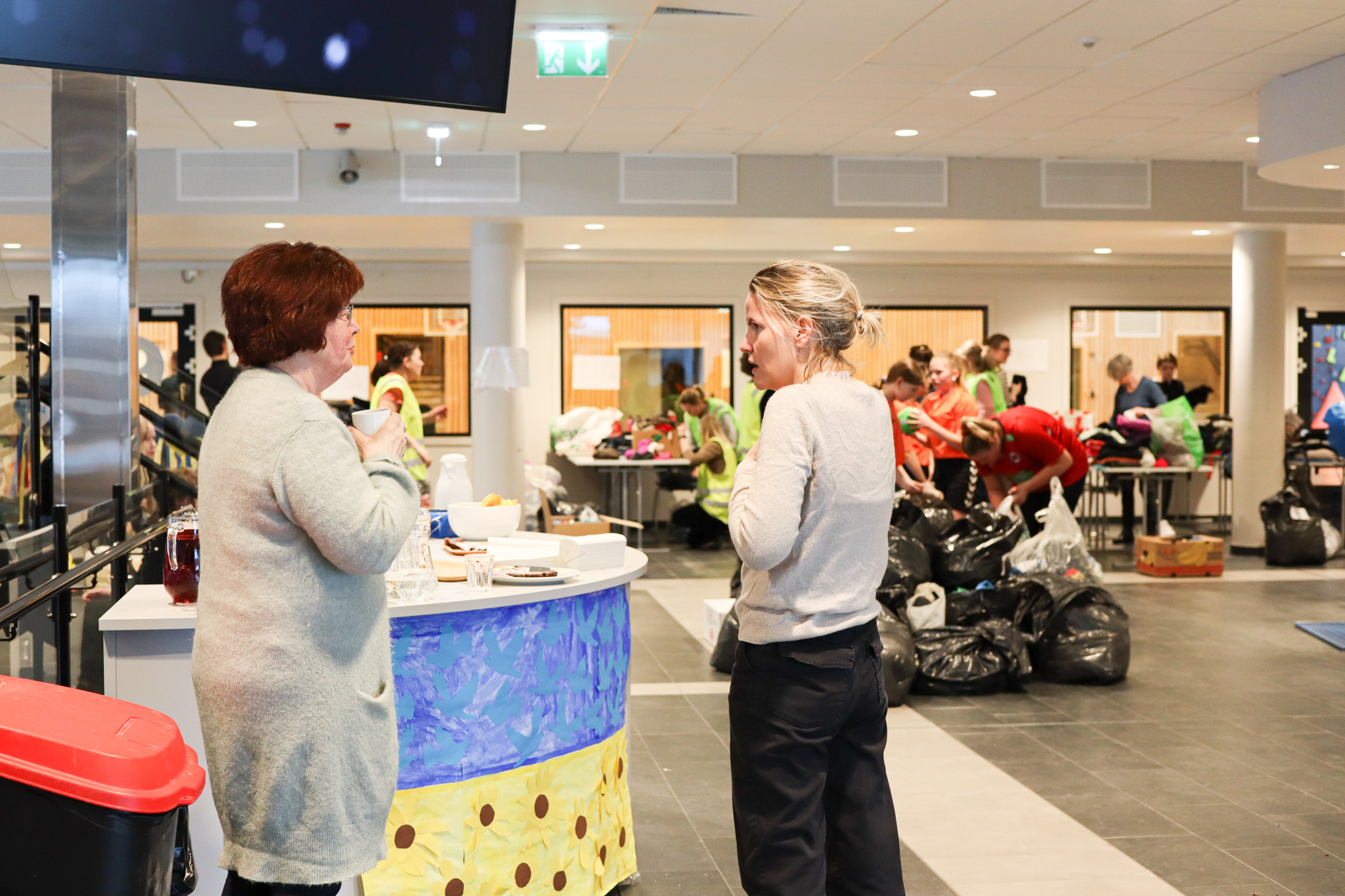 Inngangsdøra stod knapt stille denne ettermiddagen. Pose på pose med kleder fylte seg opp, leiker og utstyr rulla inn på bordene i foajeen på skulen. Eit heilt storstilt apparat vart sett i sving for å brette, sortere og pakke alt i ulike kategoriar og størrelser. Bamser, dukker, spel og trehjulssykler i lange baner. Hjelpande hender i alle kriker og kroker, blide fjes og høgt arbeidstempo.