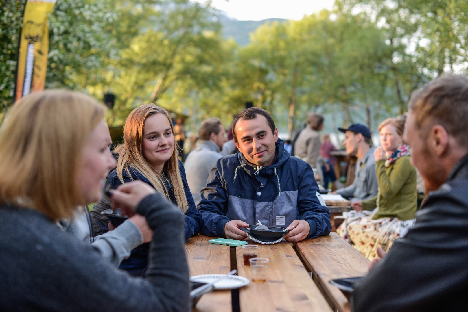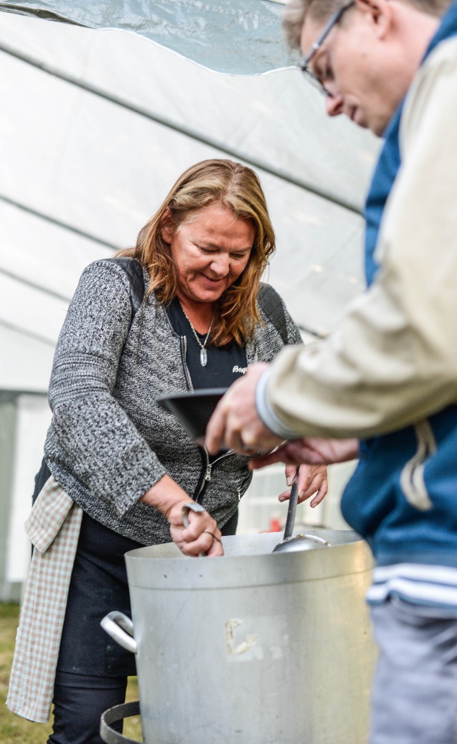 Hovudretten stod styremedlem i Innovangsjon og vertinne ved Fondsbu, Solbjørg Kvålshaugen for. Ho hadde stått i sola på Bøaflaten heile ettermiddagen og koka suppe frå botnen av.