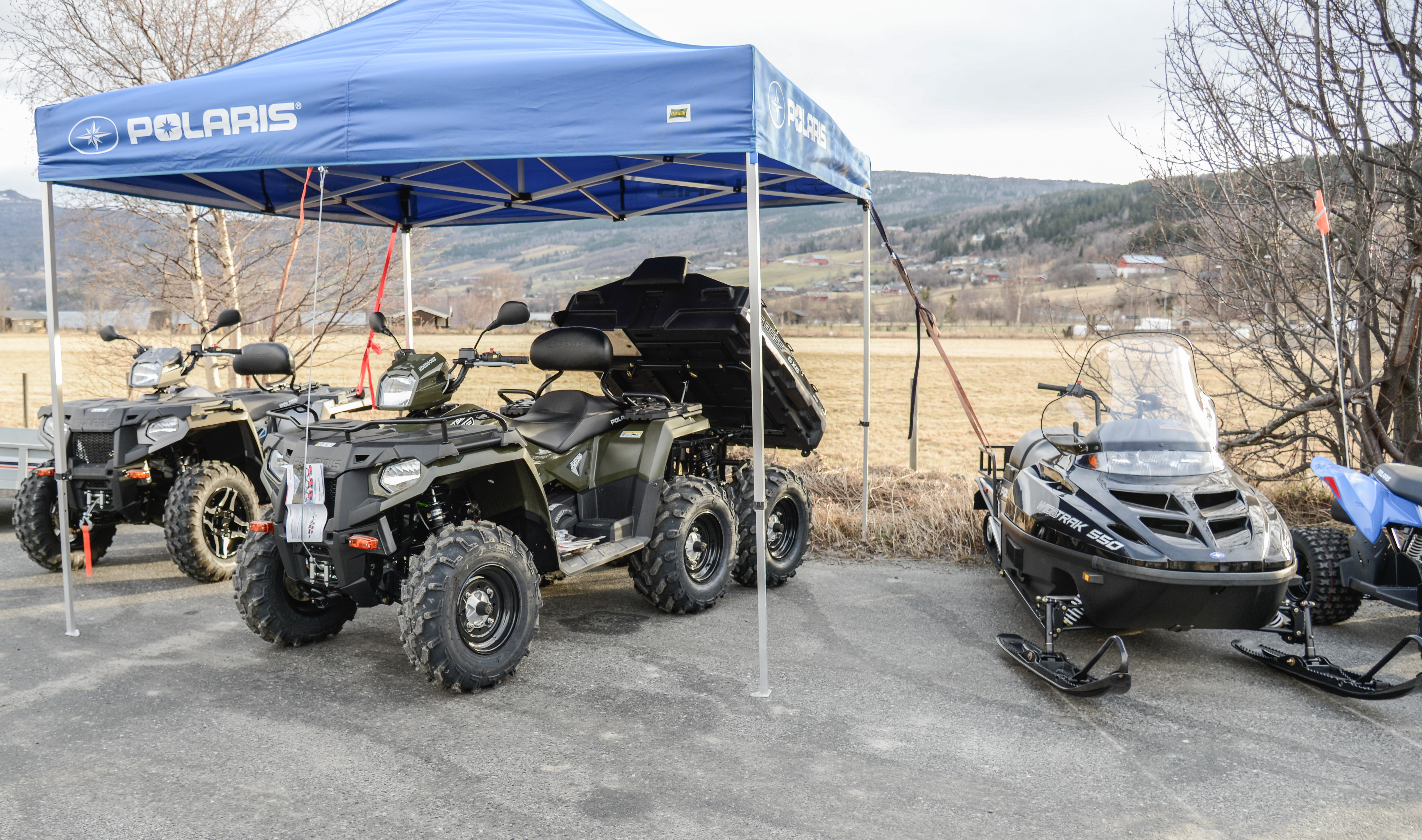Utanfor stilte Felleskjøpet, Eik, Traktorservice, Øye Bygg og Bo, Vang Autoservice, Lena Maskin og Jon G. Haugen med scootere, ATV, traktorar og anna nytt utstyr på marknaden.