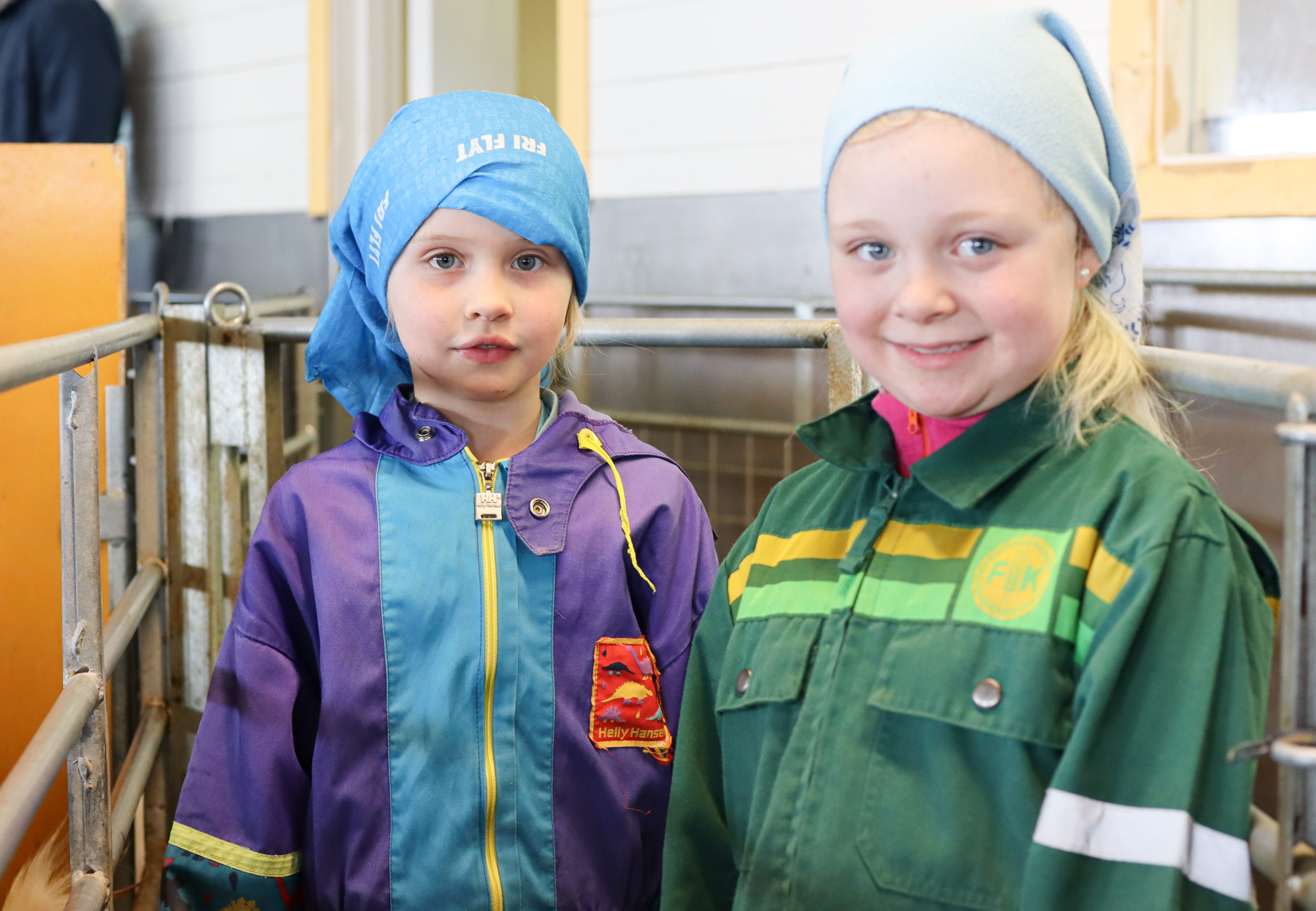 Dagen startar sjølvsagt i fjøset. Då står morgonstellet for tur, og med så mange gode hjelpere er det ingen sak å få jobben gjort!