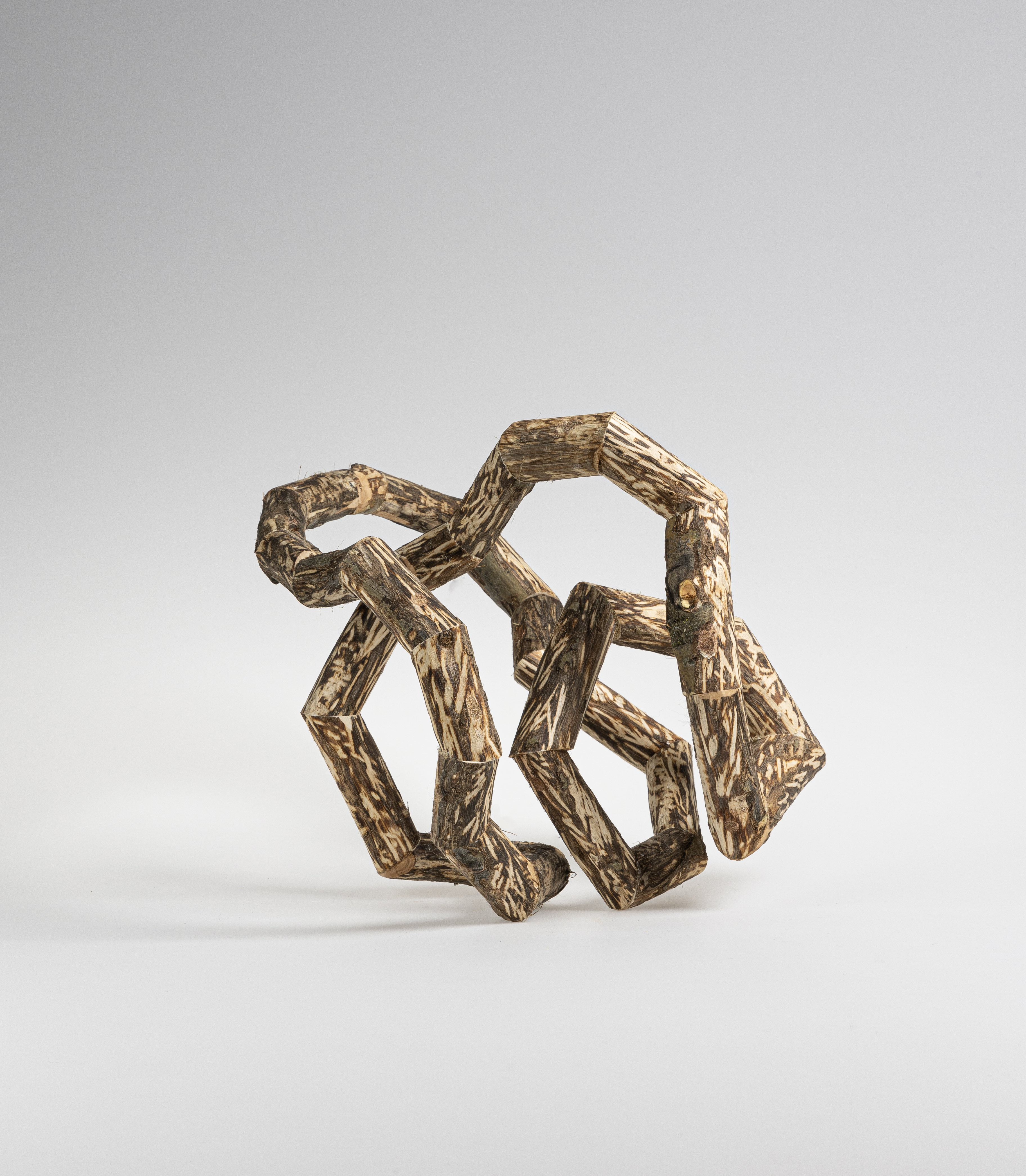 Sjølv driv ho ein økologisk gard med sau. Sauene gneg på trestammar og kvist. Ein kan sjå spor av tenner, ei særeige overflate har vekse til. Dette råmaterialet blir så eit utgangspunkt for mange av verka.