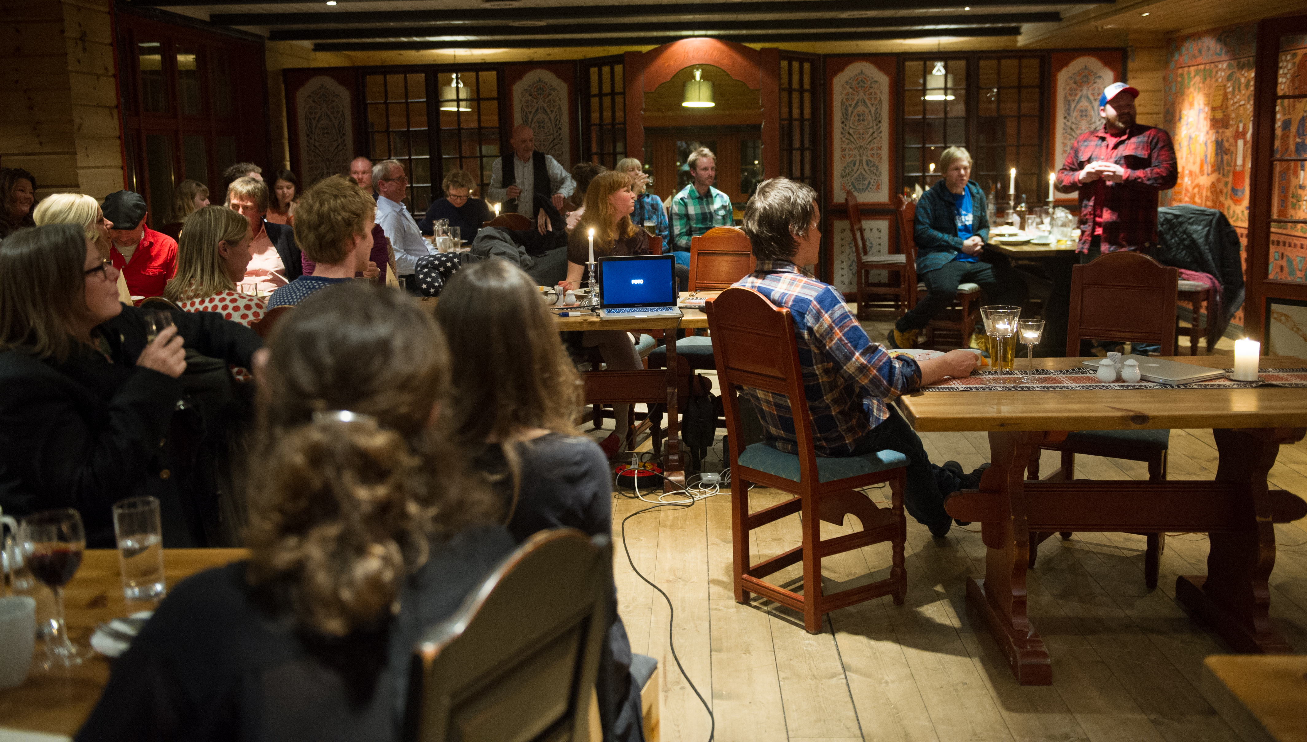20:00: Fondue med kjøt av høylandsfe frå Sørre Kjøs og reinsdyr frå Filefjell reinlag. Grønsaker, sausar, salat og anna tilbebør.