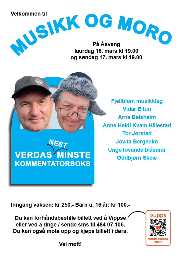 - Vi gler oss veldig til å lage god stemning med musikk og humor, og håper at folk vil ta turen til Åsvang for ein triveleg kveld, smiler Jon Eggen i Fjellblom musikklag.
