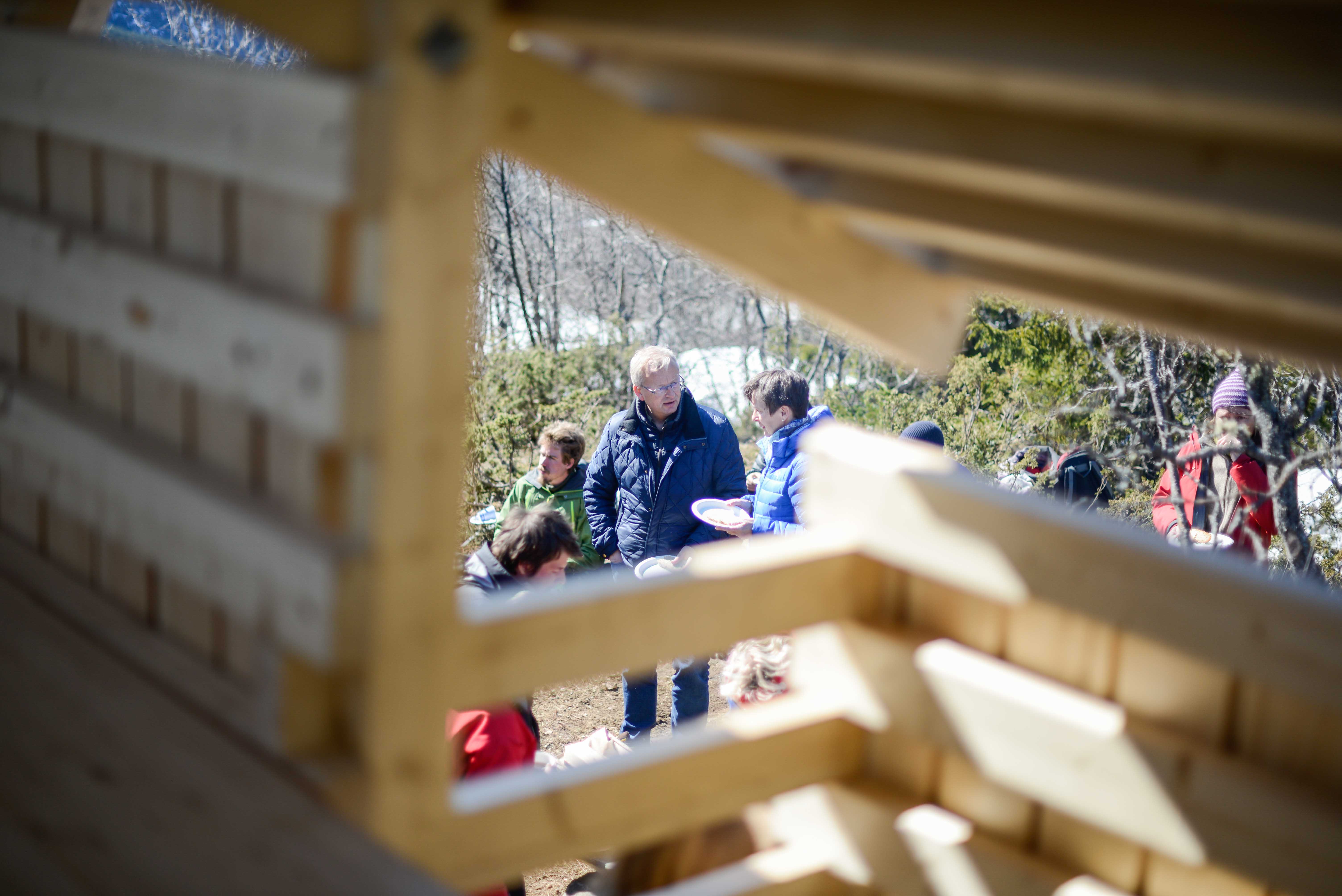 Bruk og gjenbruk av lokale materialer er mykje av kongstanken ved prosjektet. Inspirasjonen er henta frå matrevolusjonen ein har sett dei siste åra, og det var difor naturleg å servere lokalmat under opninga.