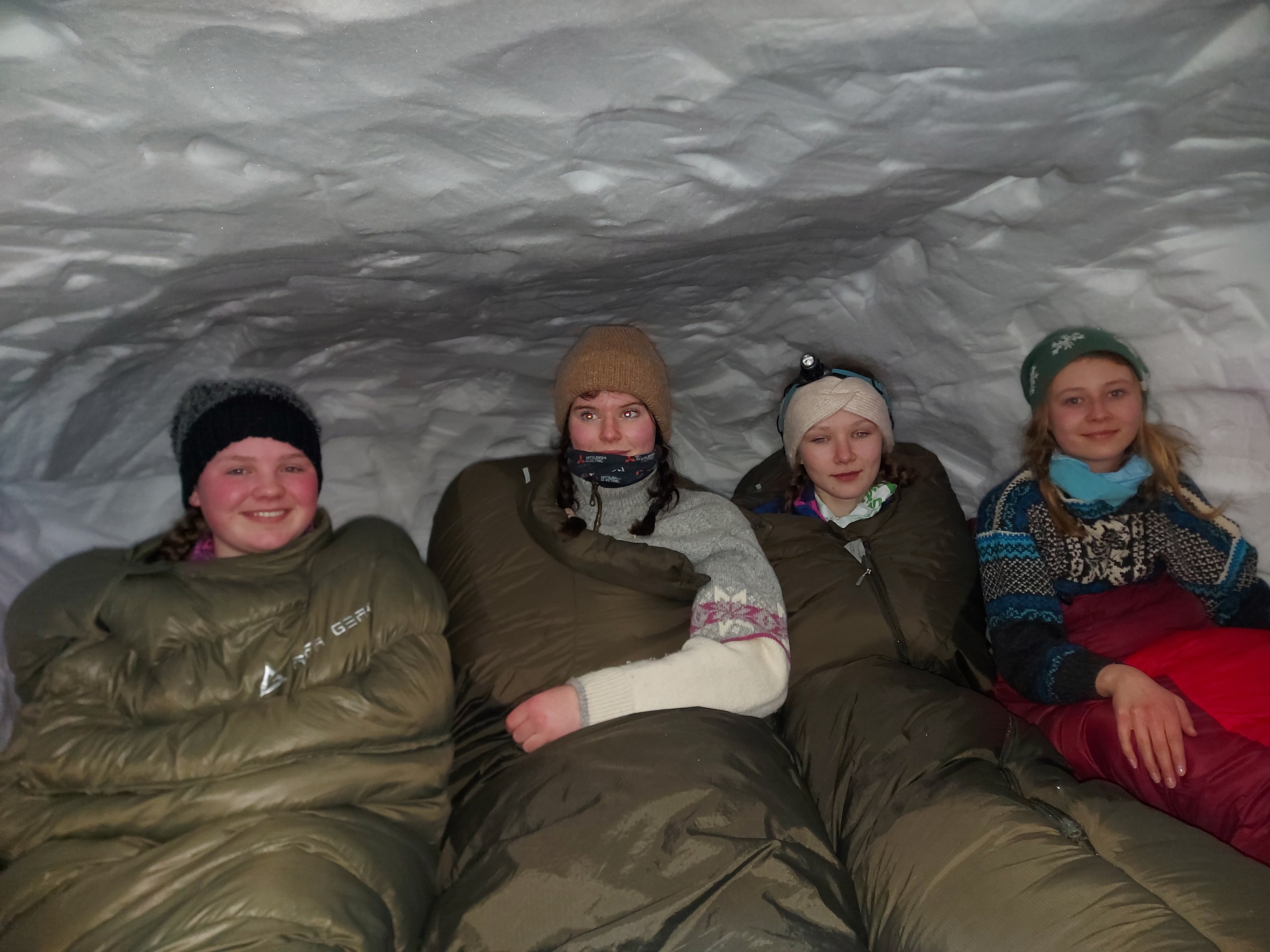 Inndelt i grupper skulle elevane lage si eige snøhule, der heile gruppa skulle overnatte. Fleire var nok spent på førehand om det ville bli kaldt eller om om hula skulle rase saman. Men, eit godt stykke arbeid i førekant førte til ei trygg og god natt for 9. klassingane. Det vart rett og slett ein magisk tur!
