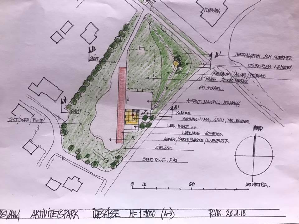 Det er den gamle grasbanen på Mjøsvang som no skal gjerast om til aktivitetsområde og teikningane er levert av landskapsarkitektane Ingrid Skavhaug og Rune Vik i fellesskap.