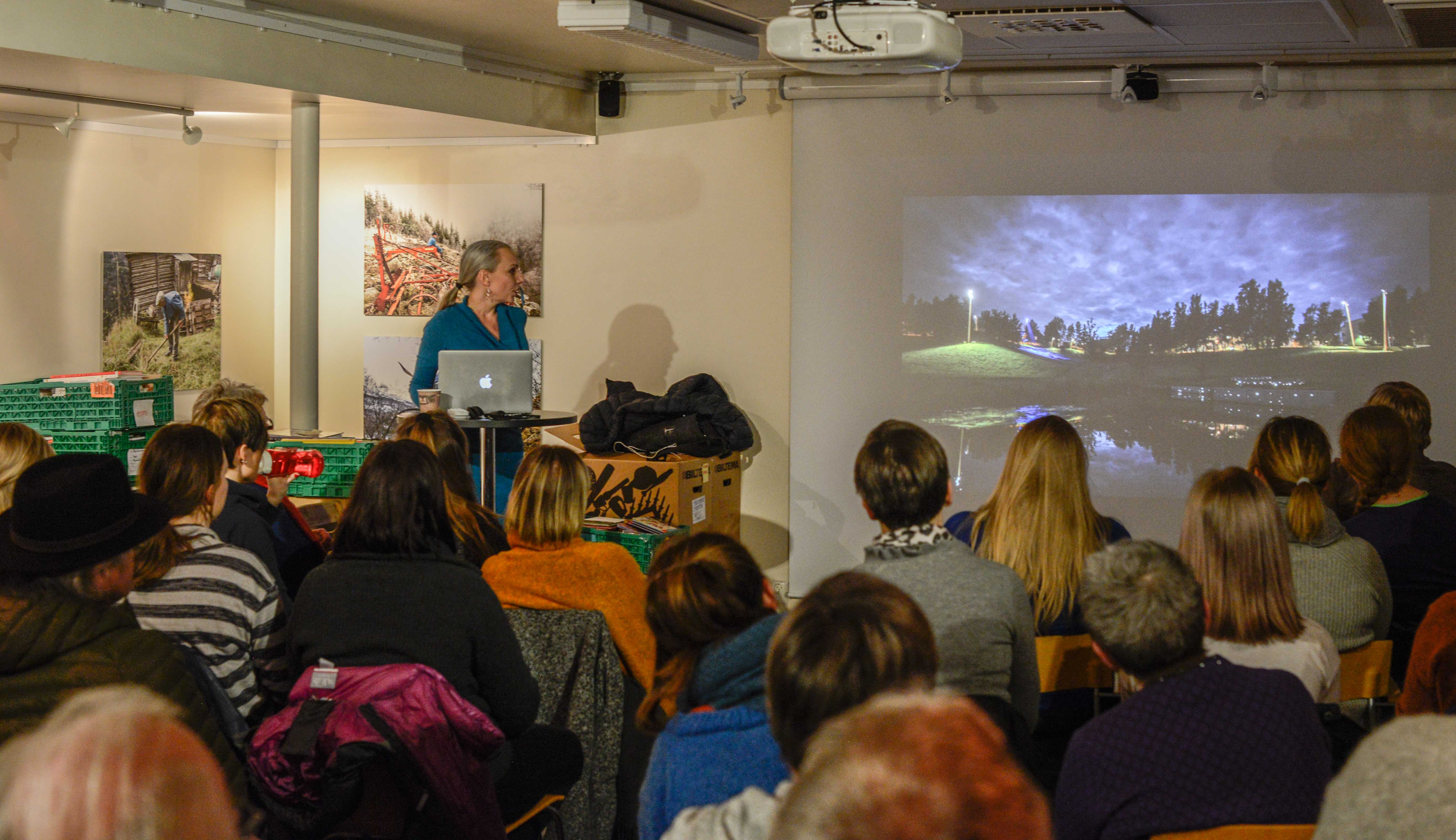 Marknadsføringskvelden var eit ledd i Høge-Sprang-prosjektet og eit samarbeid mellom Innovangsjon, bibliotek og frivilligsentral i Vang. Opp frå Fagernes hadde kreativ leiar i Valdres Natur og Kulturpark, Henning Wangsnes, teke turen for å snakke om merkevara Valdres.