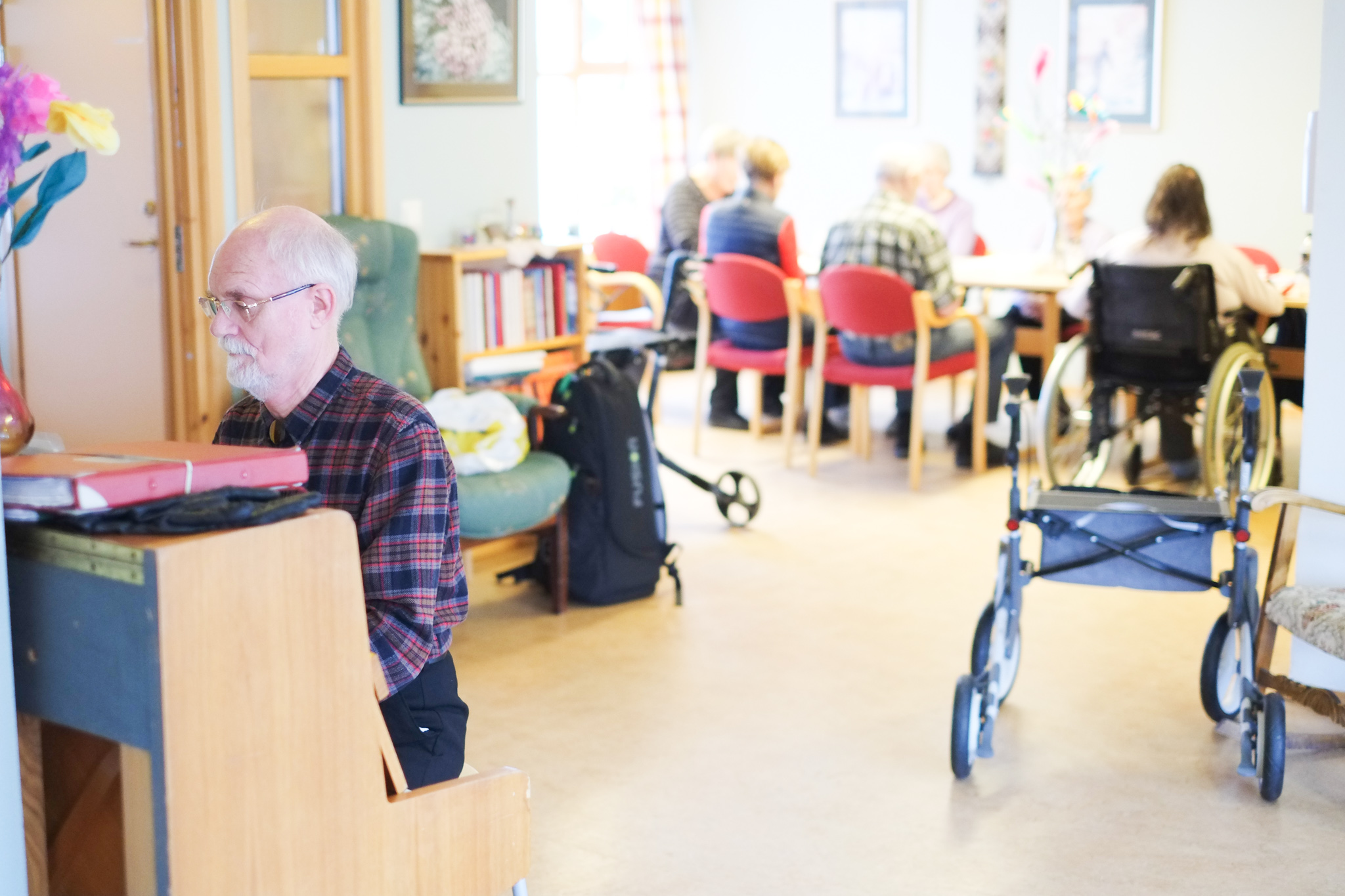 Saman med fleire andre har Siri-Gro og Allistair sangstund også nede på Vangsheimen ein gong i månaden. Og så er det dagsenter 2 dagar i veka, då etbebuarane også saman, og har aktivitetar saman med nokon av dei tilsette.