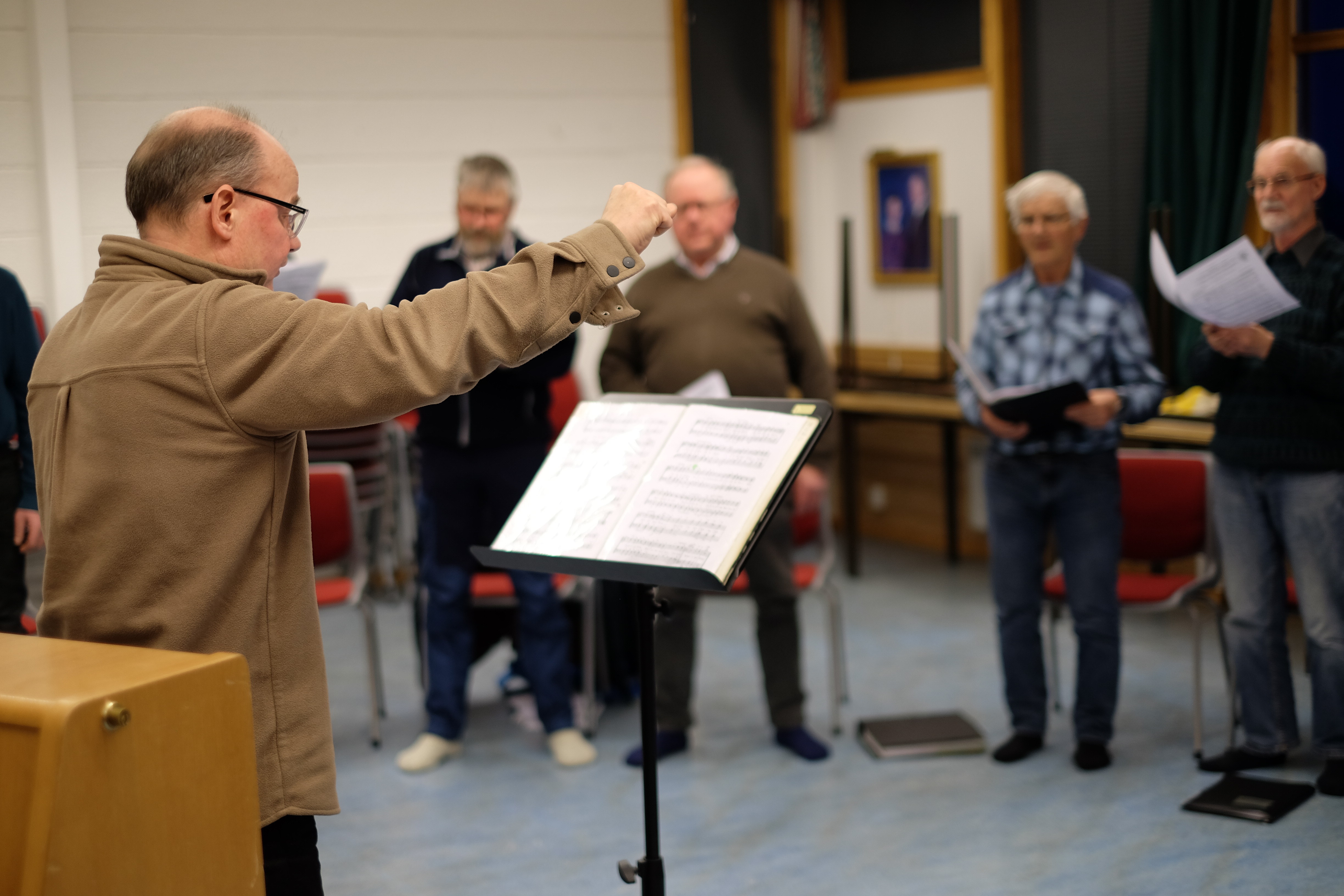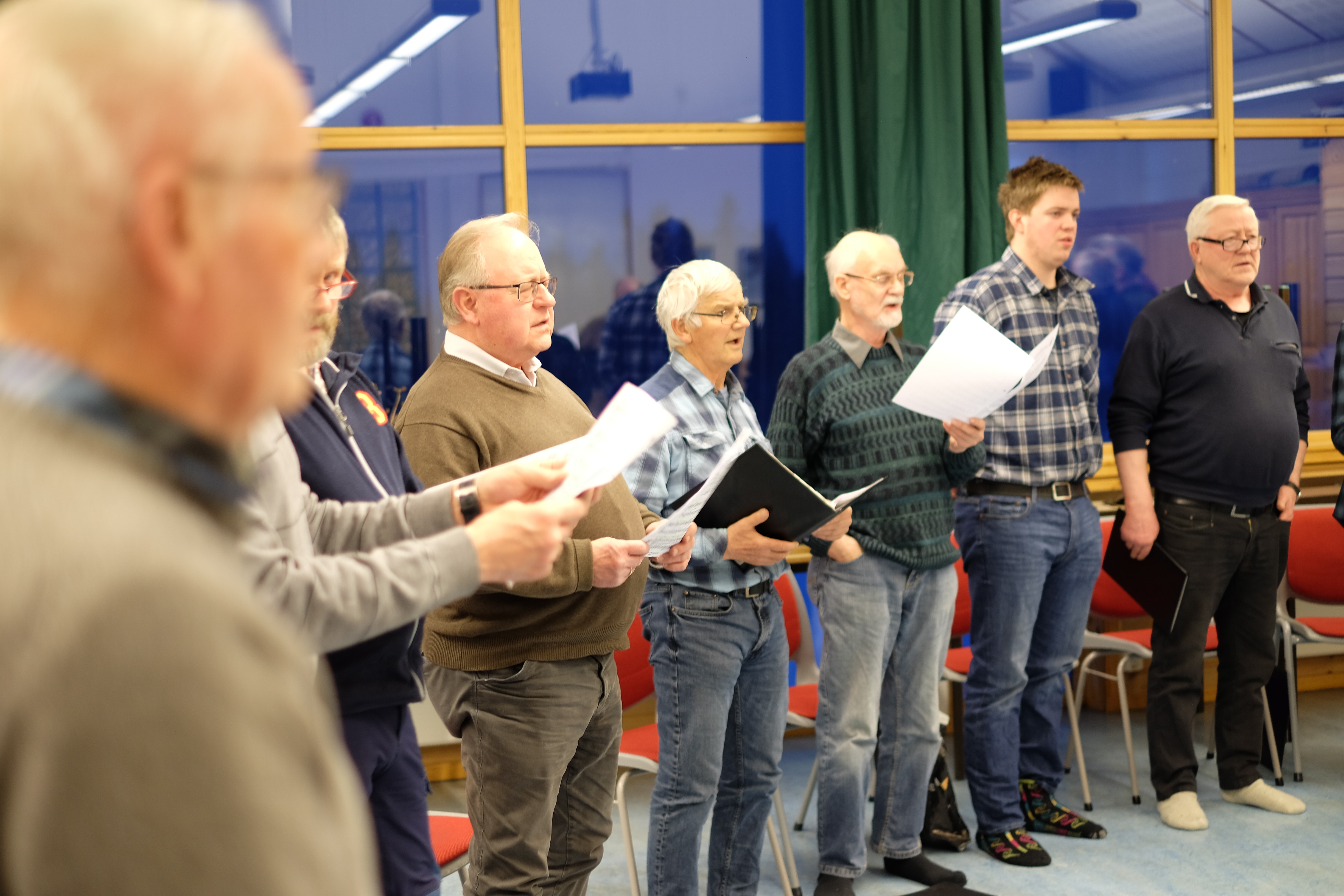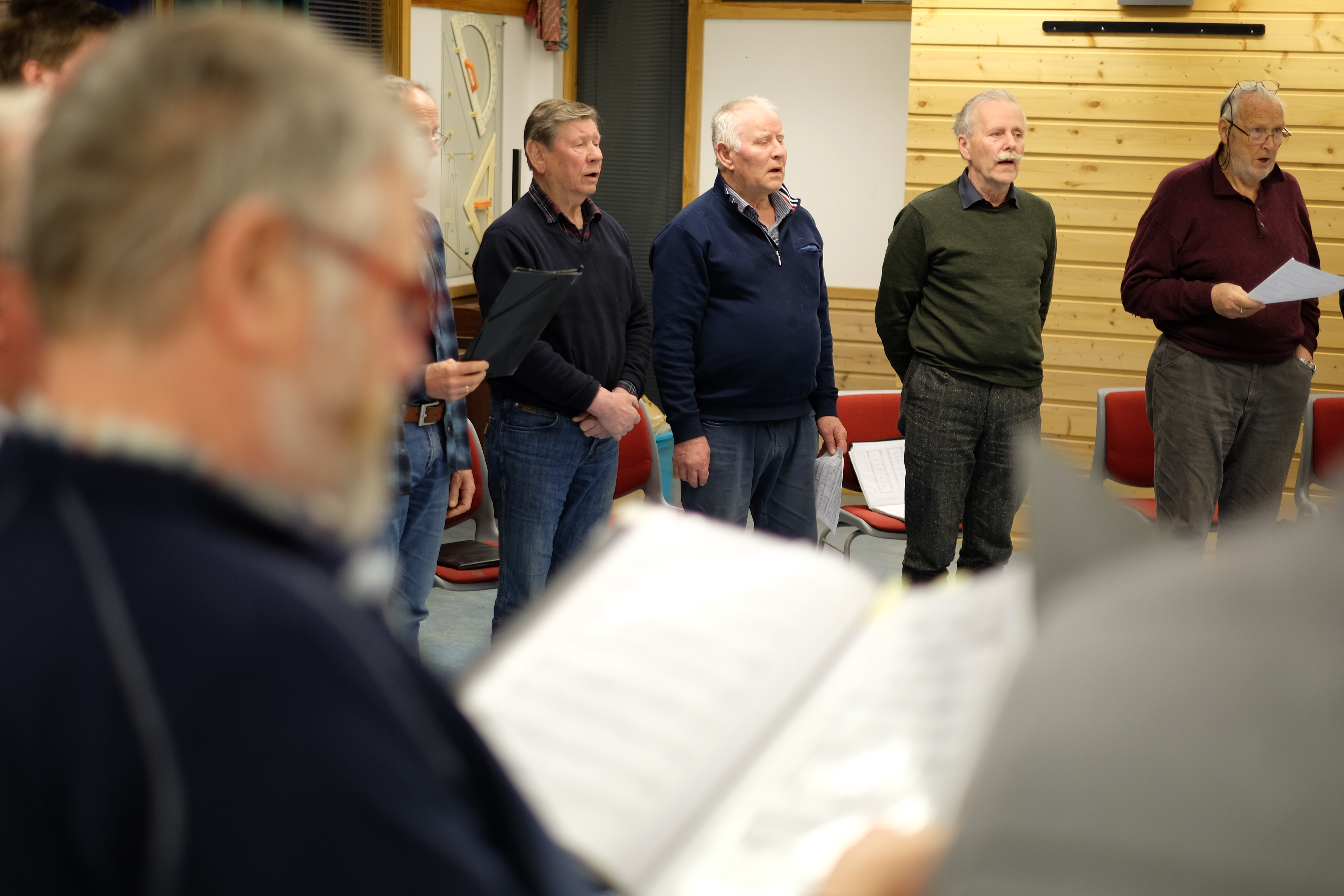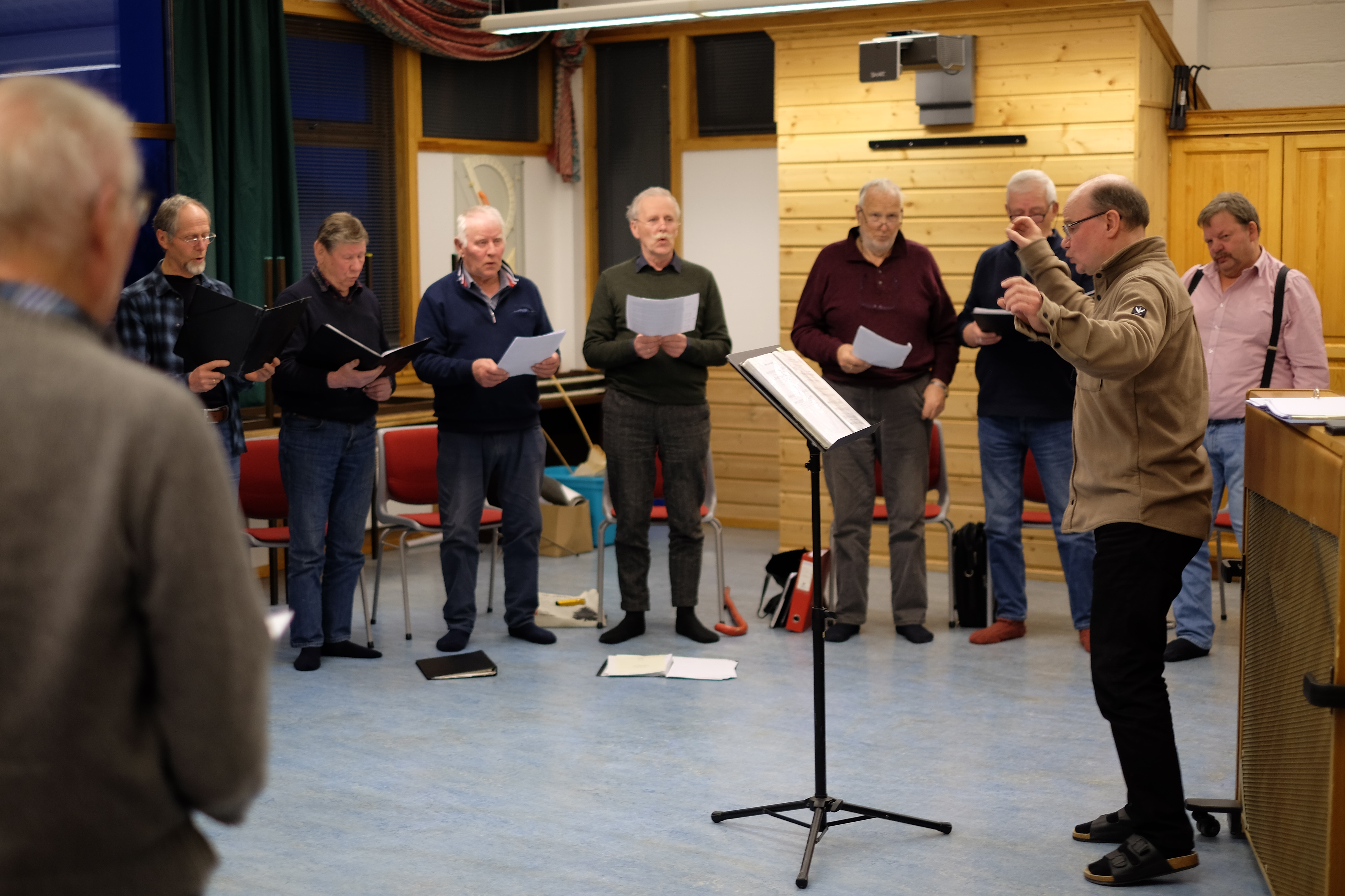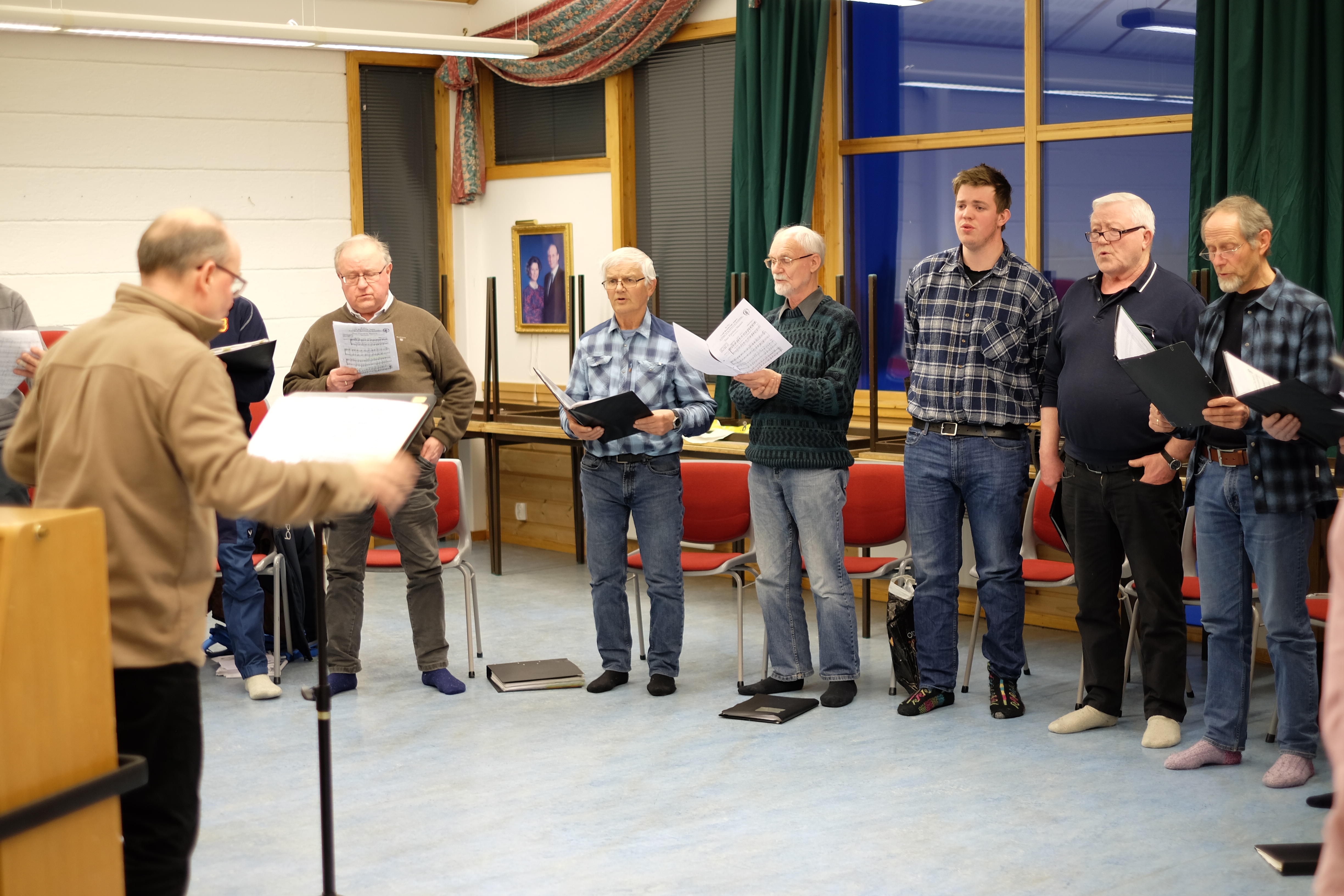 Det er for tida 20 aktive songarar i koret. Det er eigentleg Silje Helland som dirigerer, men i dag vikarierer nyslått leiar i koret, Oddbjørn Skeie, som dirigent. Med stort engasjement loser han koret gjennom sangane dei skal øve på. Kvifor han engasjerer seg i koret er ikkje så lett å sette ord på.
