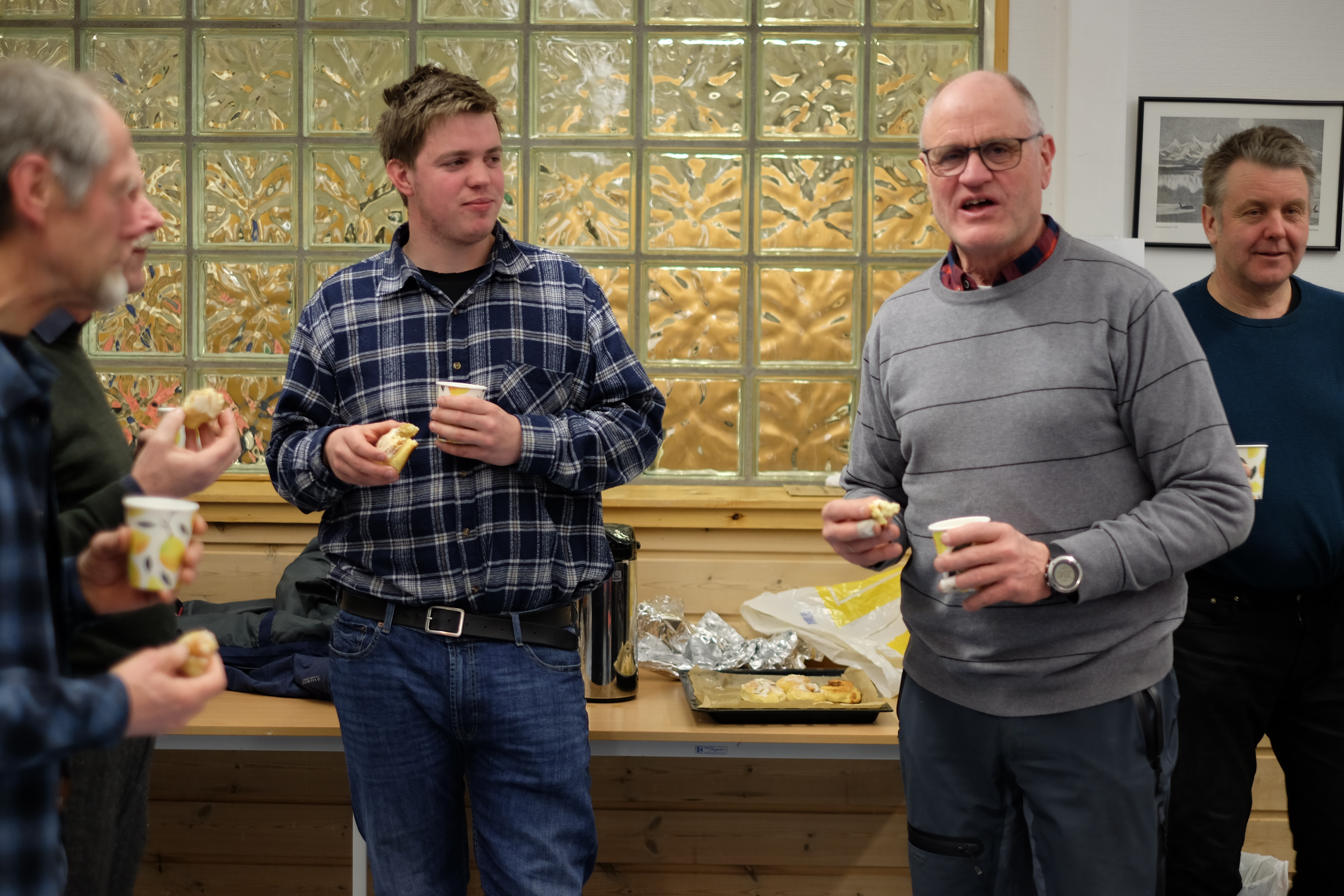 Når pausa kjem er det fram med kakeboksen. I dag er det Ola Bøland som har ansvar for bevertninga.