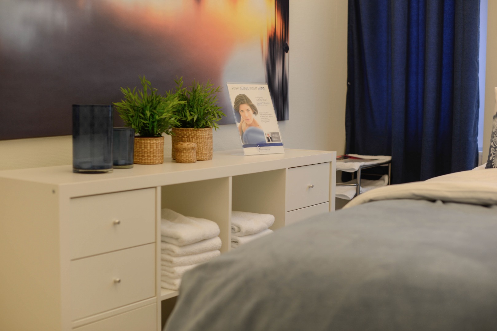 Det er ikkje berre behandling å få på klinikken hjå Belinda. Ho er mellom anna forhandlar av fleire produkt for hudpleie og velvære.