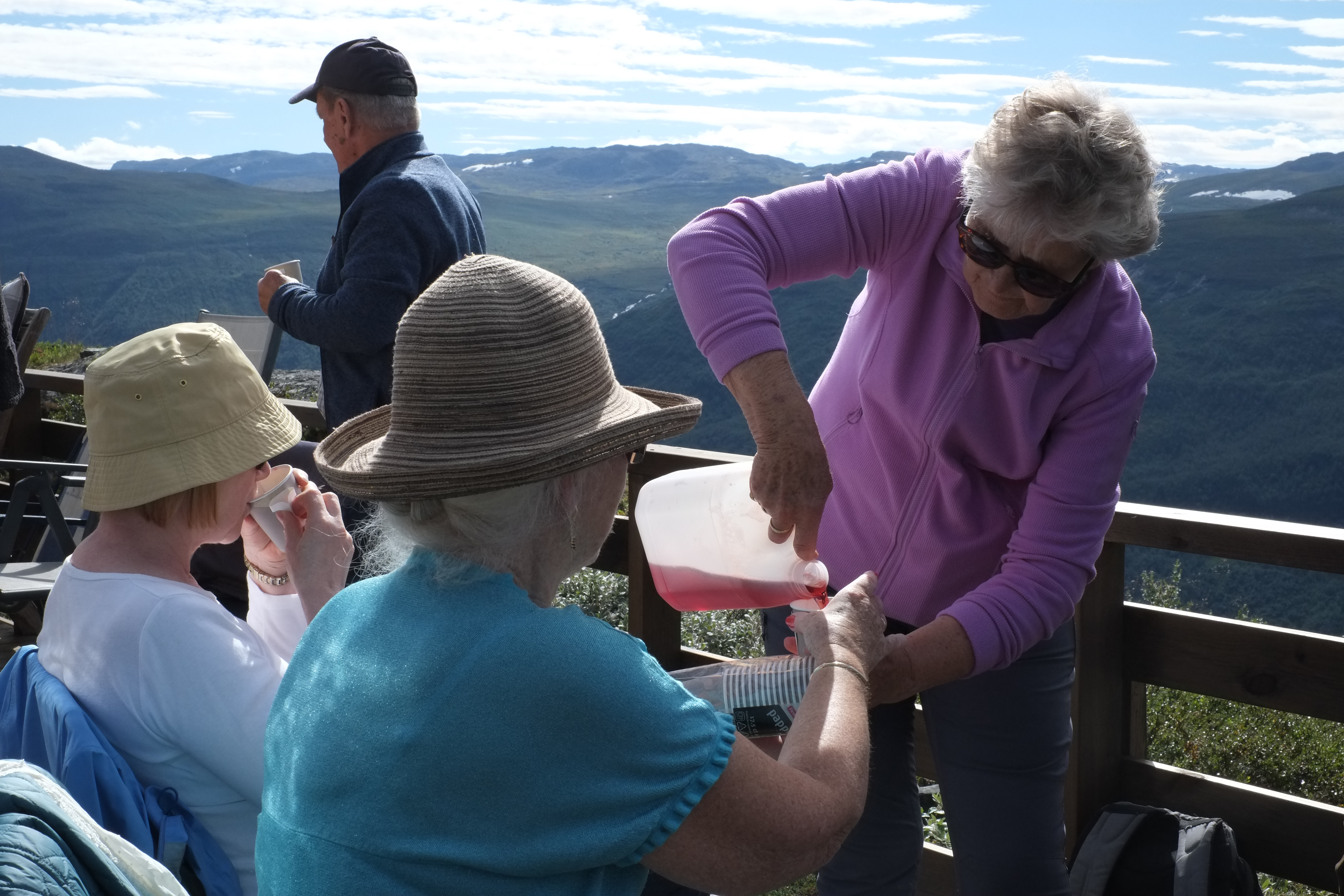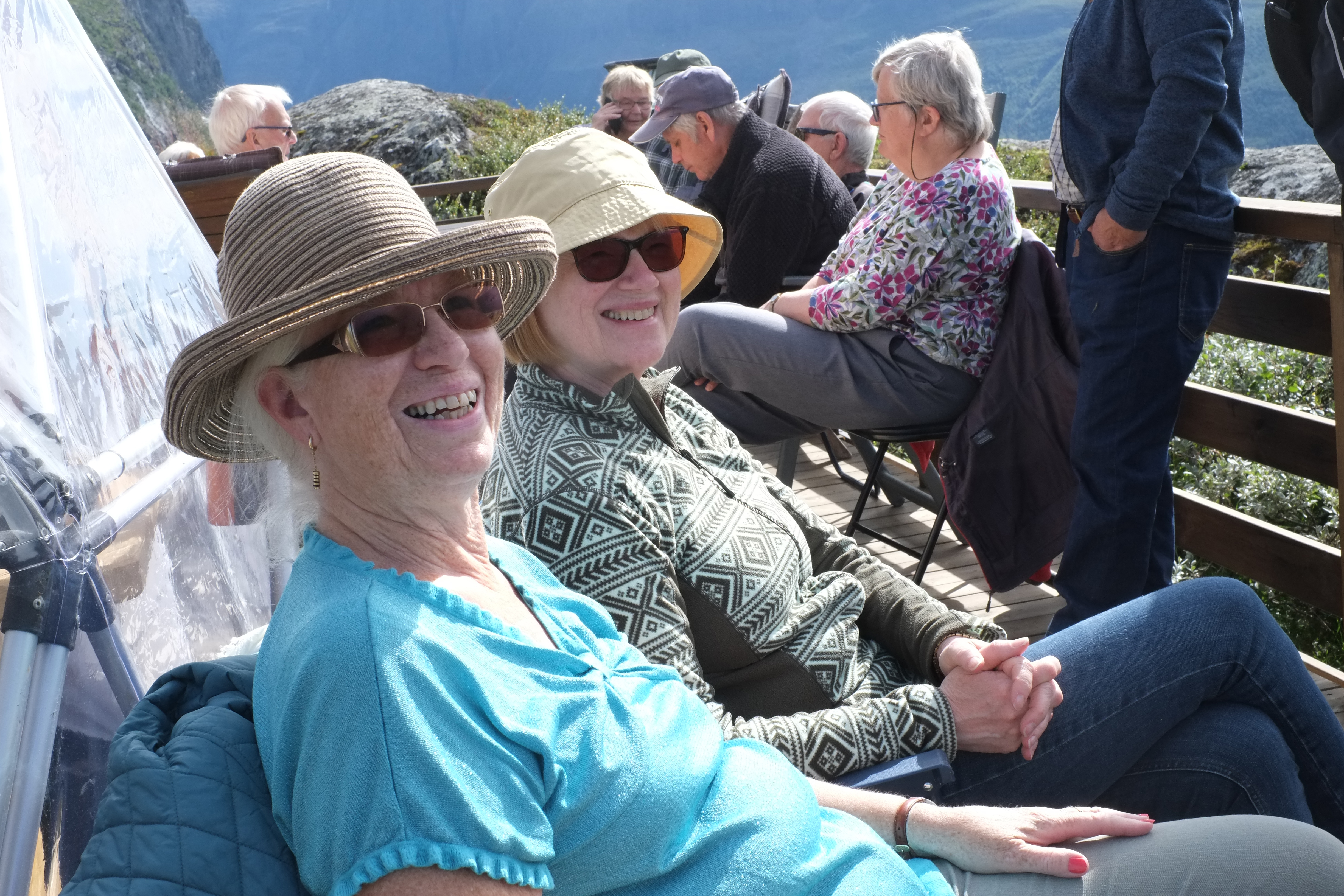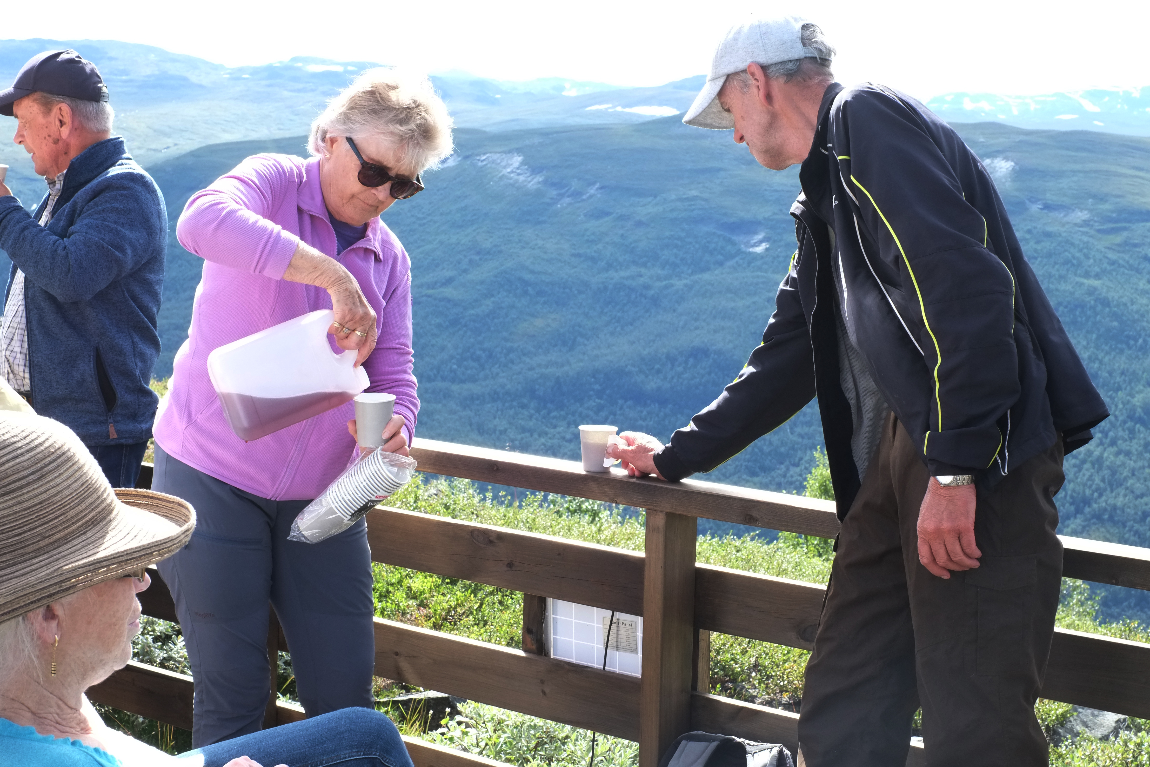Ein av dei som er med for første gong på pensjonistlagets turar er Nils Grøv. Han vart blind for ca 20 år sidan, og spøker med at han får jo ikkje sett denne fantastiske utsikta som alle pratar om. – Men det er veldig sosialt og triveleg å vere med, folk er flinke til å fortelje og inkludere, seier han. Sjølv har han deltatt meir på blindeforbundet i Innlandet sine turar, men kanskje vil han no bli med på noko av det som pensjonistlaget arrangerer også.
