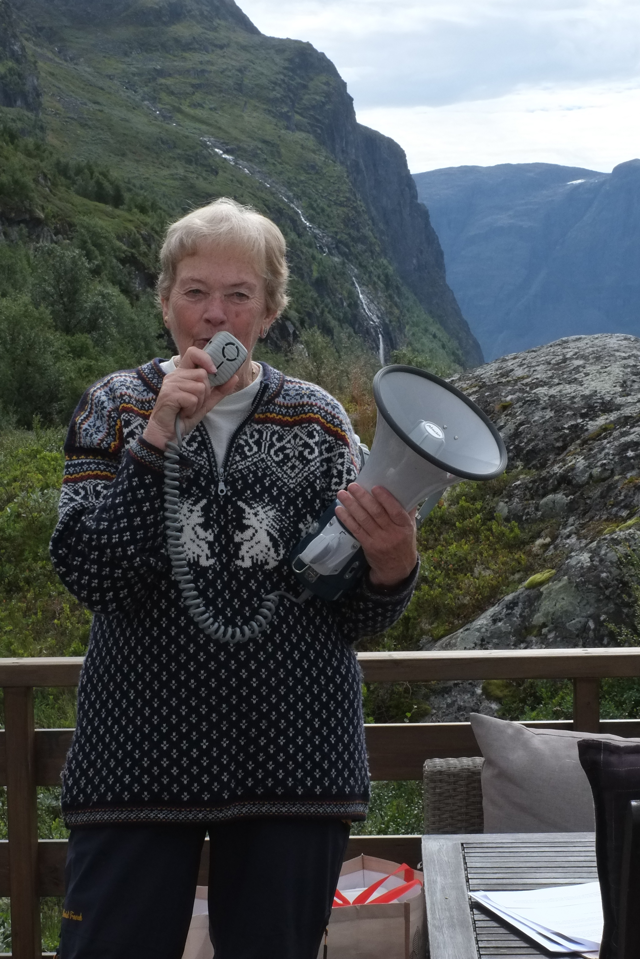 Både Ivar og Bjørg skryt av Gerd Marken, som har vore leiar i fleire år. Også i dag er ho tydeleg og trygg; ho har oversikt over dei frammøtte, pratar til forsamling i megafonen, koordinerer trakteringa og introduserer tvillingane som fortel om domane. Mellom slaga spør eg henne kva som gjer at ho engasjerer seg? – Det har eigentleg vore naturleg for meg heile livet, ein må engasjere seg i det ein er interessert i. Det skjer jo ingenting om ingen gjer noko! Og så er det viktig å ikkje blir sitjande når ein går av med pensjon. Og det er klart det har gitt meg mykje, eg har fått vore med på mange flotte opplevingar gjennom dei laga eg har engasjert meg i.