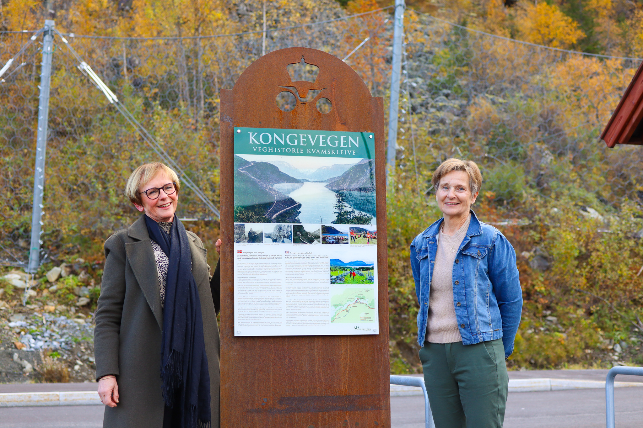 Den eine tavla står i Hugavike ved parkering og bussholdeplassen, og den andre står på Neset der Kongevegen gjennom Kvamskleiva startar.