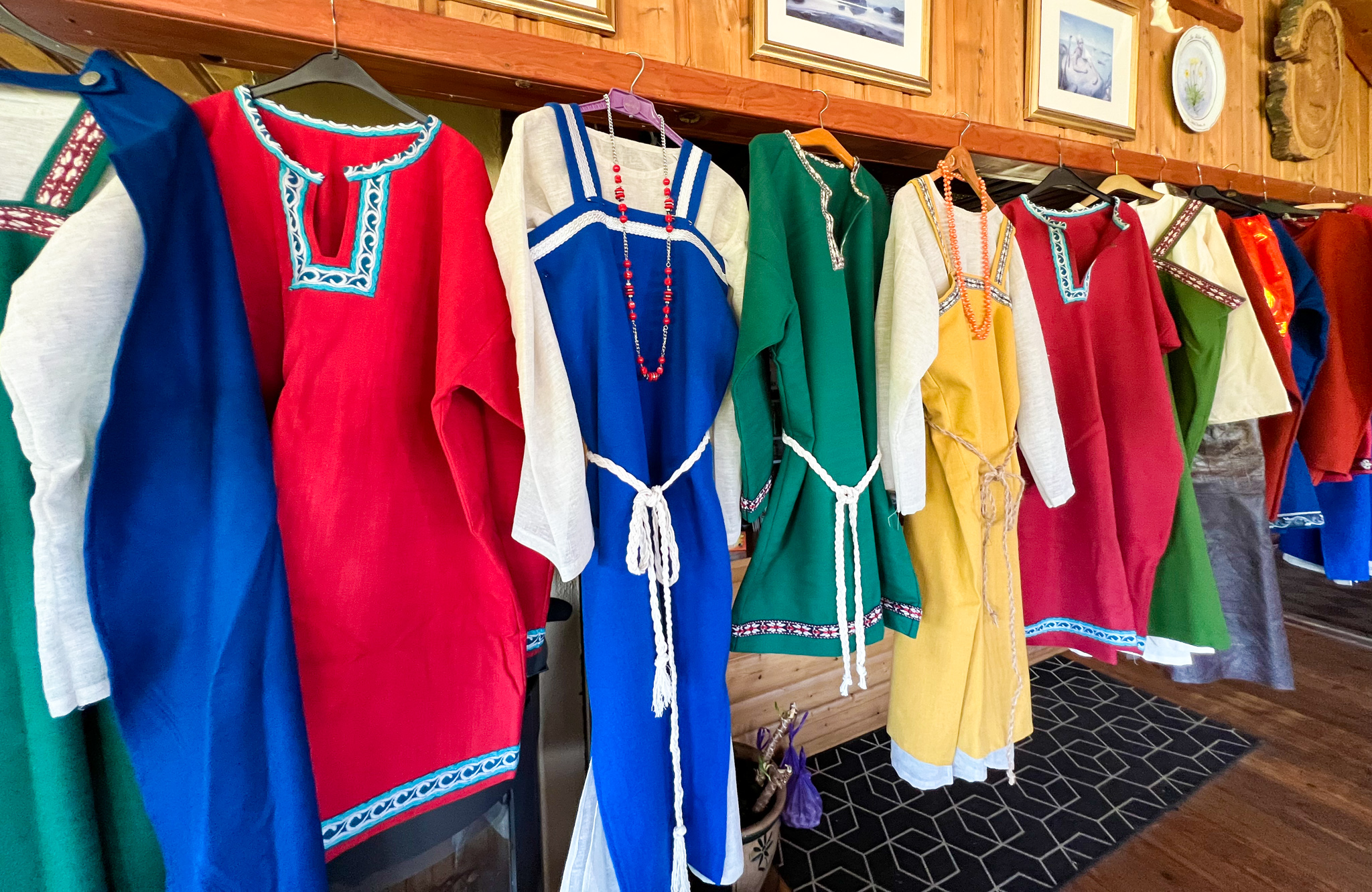 Mykje av stoffet dei har brukt har dei fått av Gudbrandsdalen Uldvarefabrikk, medan mykje har dei sjølv henta inn frå Kjolebutikken på Lena.