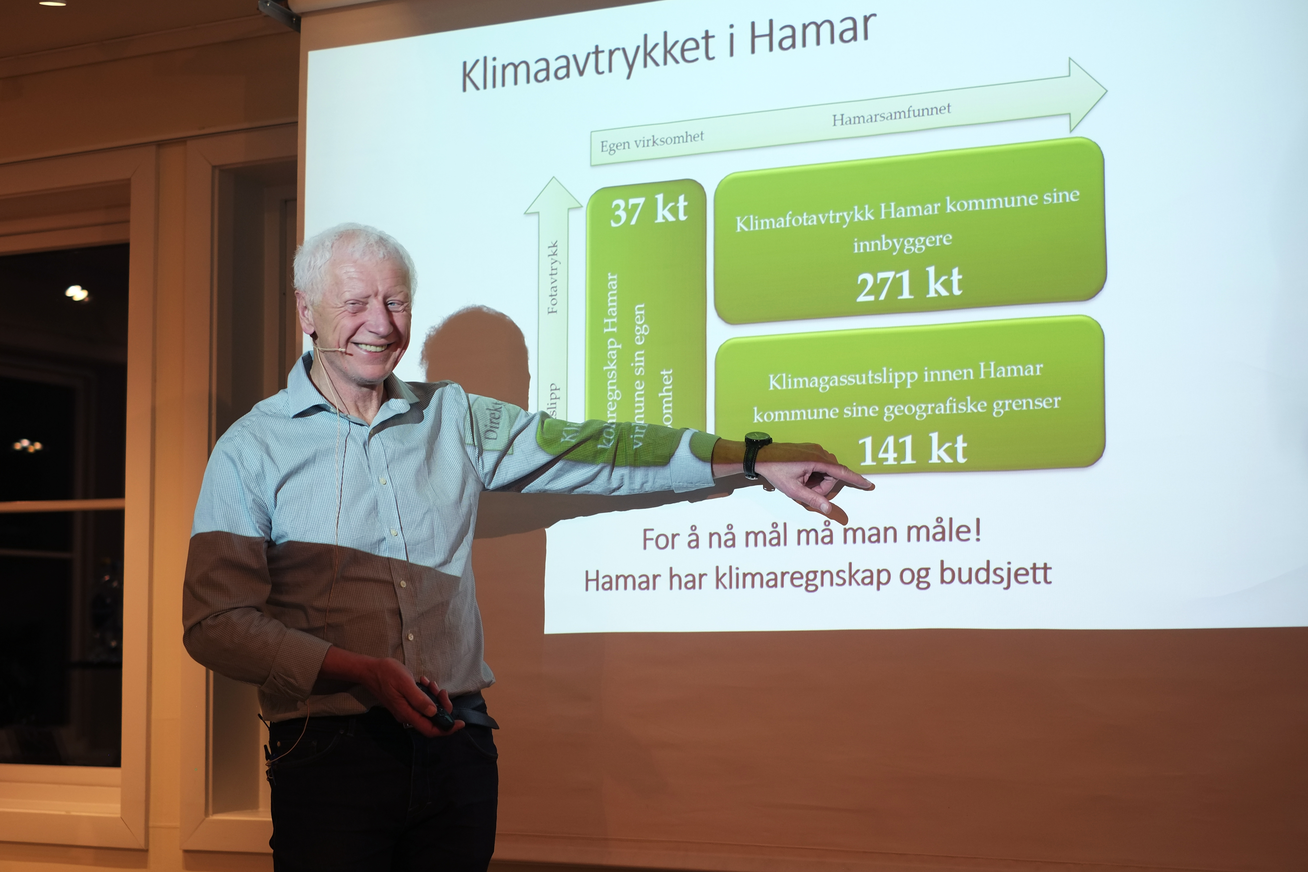 Hamar-ordførar Einar Busterud ga oss eit innblikk i miljøsatsinga deira - og slo eit slag for mogelegheitene i Vang og Valdres.Til tross for "betydelige avstandsulemper lokalt" viste han korleis små kommuner kan få til konkrete tiltak, og legge grunnlag for endring gjennom å inspirere andre. Han la vekt på at om Norge skal lykkast med å nå Parisavtalen, så må alle kommunane også nå dei same måla.
