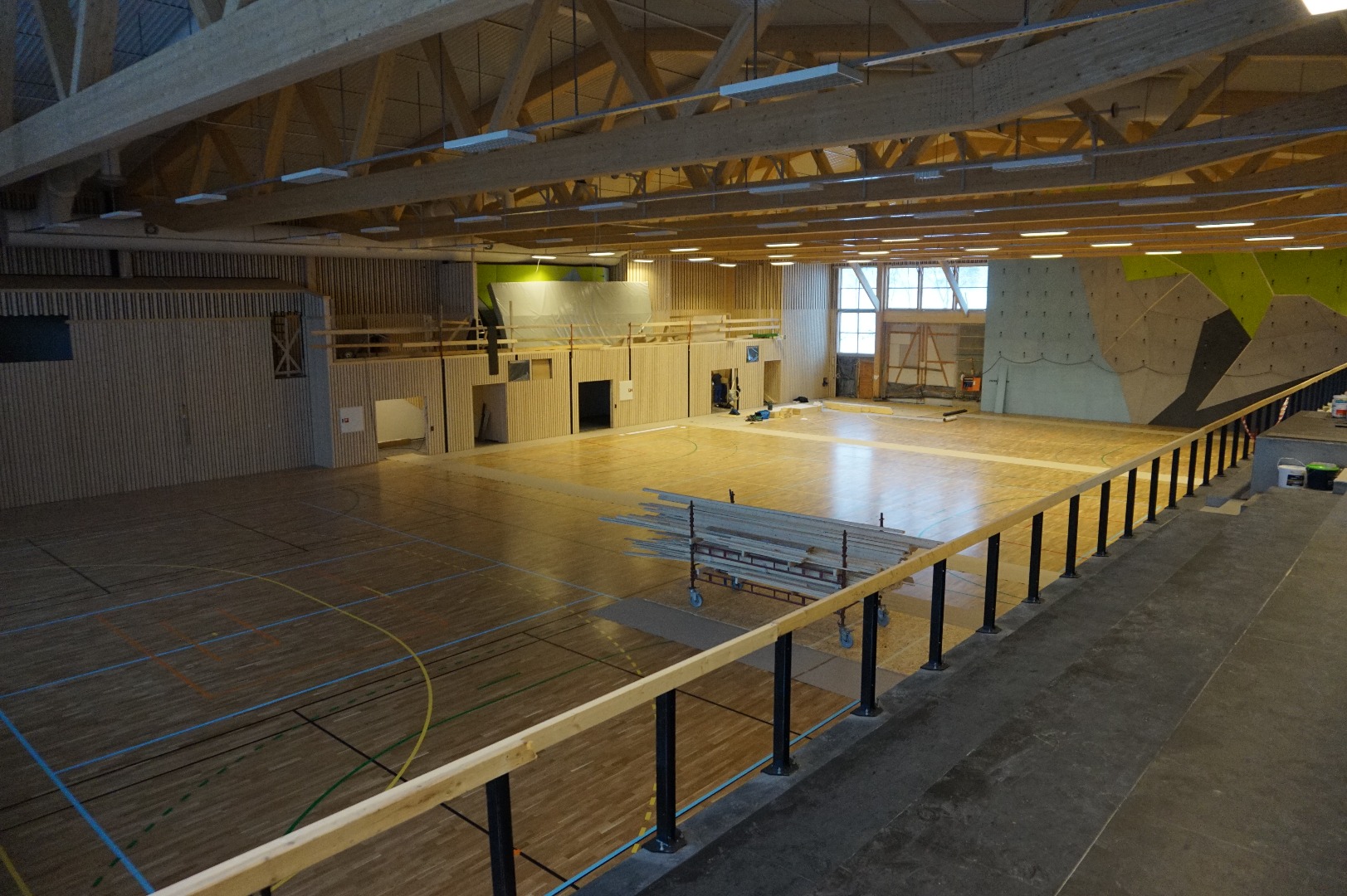 Fleirbrukshallen med klatrevegg er sjølve storstova i det nye anlegget, men alt frå ungdomsklubb til kunst og handverk-avdeling, skulekjøkken og terapibasseng er rom med skreddarsaum ned til minste detalj.