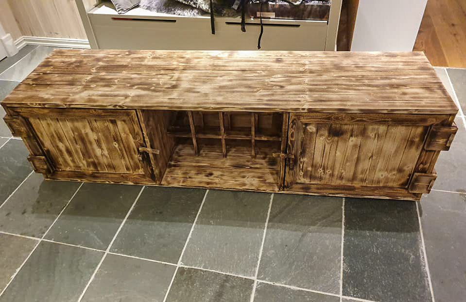 Odd Ivar og Bjørn-Roger er to gode naboar frå Ryfoss med med felles interesse for trearbeid. Via facebooksida Snikkarbugutadn tilbyr dei plassbygde tremøblar til andre.