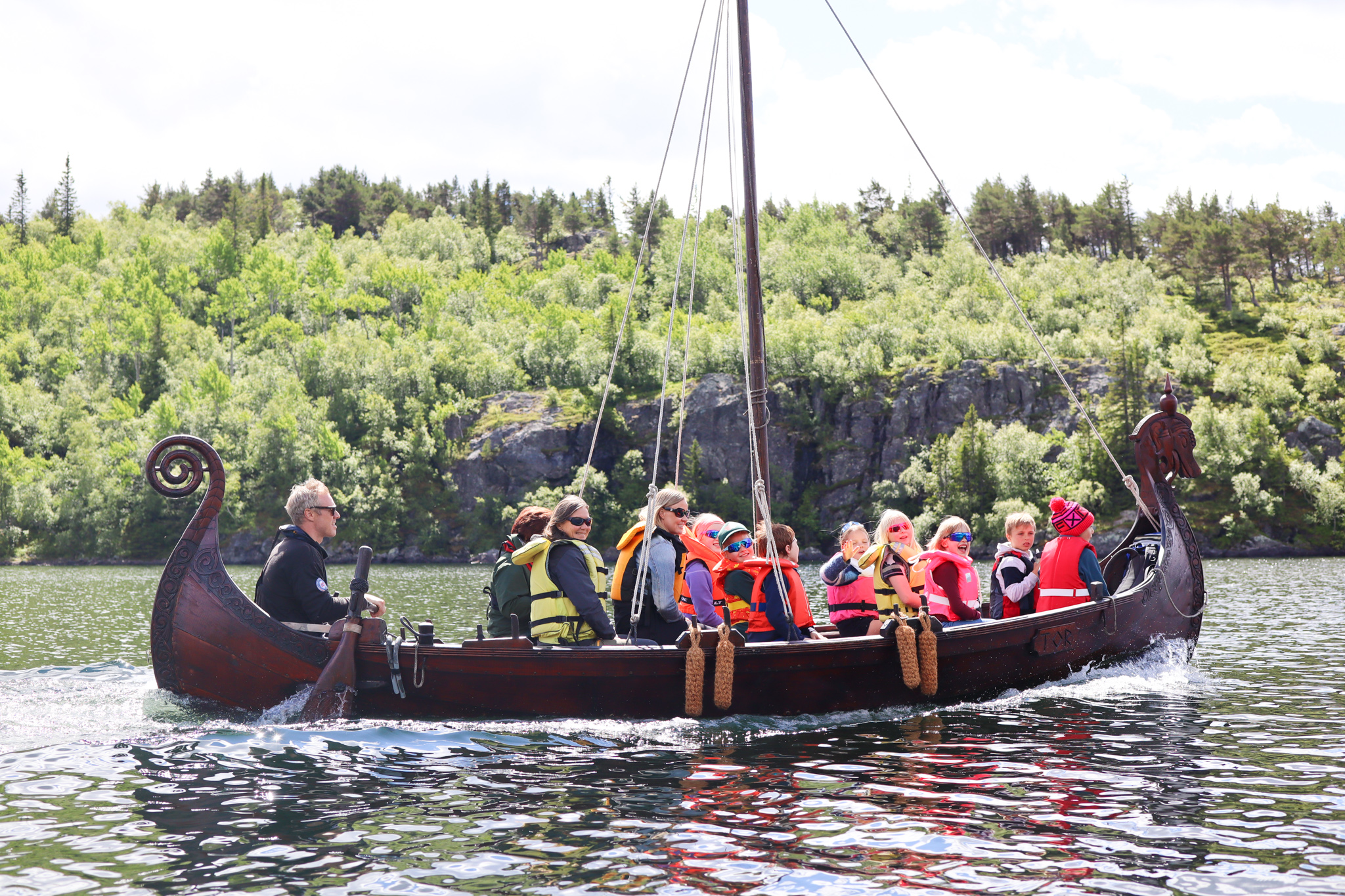 Desse skipa er laga av Ola B. Wangensteen og Jon Ødegard. Det fyrste vikingskipet Odin, byrja dei å snekre og skjære ut i 1994 og båten var klar for sjøsetting i 1996. Medan skipet Tor, byrja dei å bygge i 2015. Det var difor stor stas når 3. klasse skulle få vera med på seilasen over mjøsa! Som stødige bårførarar denne dagen var Ola Wangensteen og Erik Martinsen, dei fekk dei små vikingane trygt i havn på Lerhol.