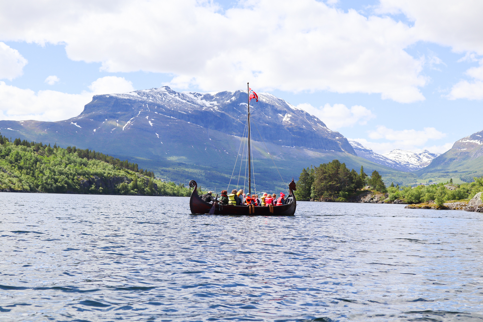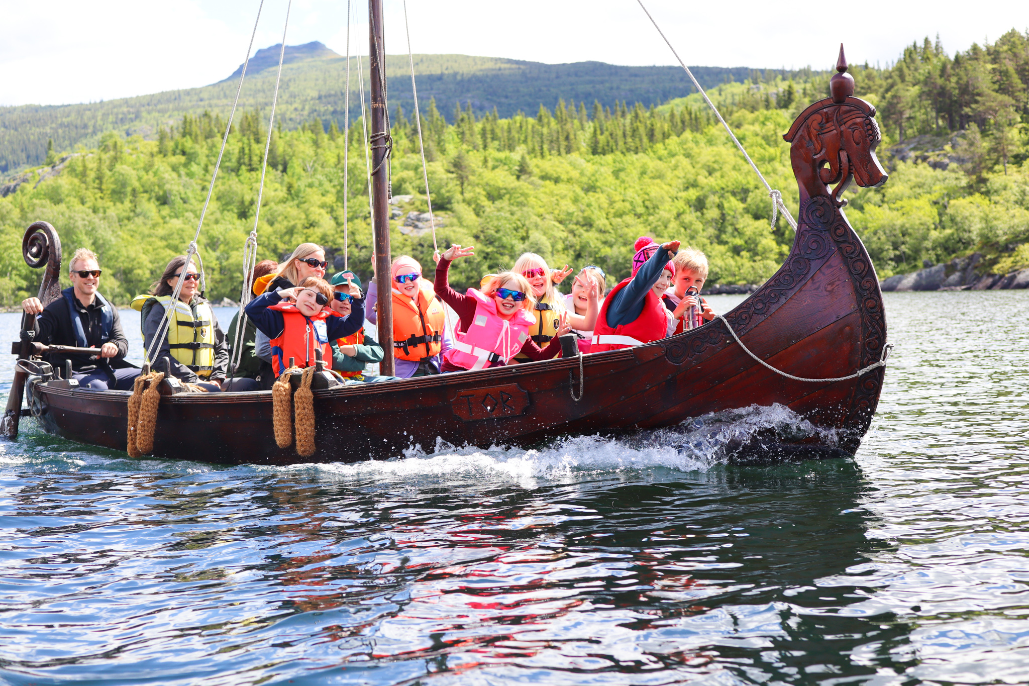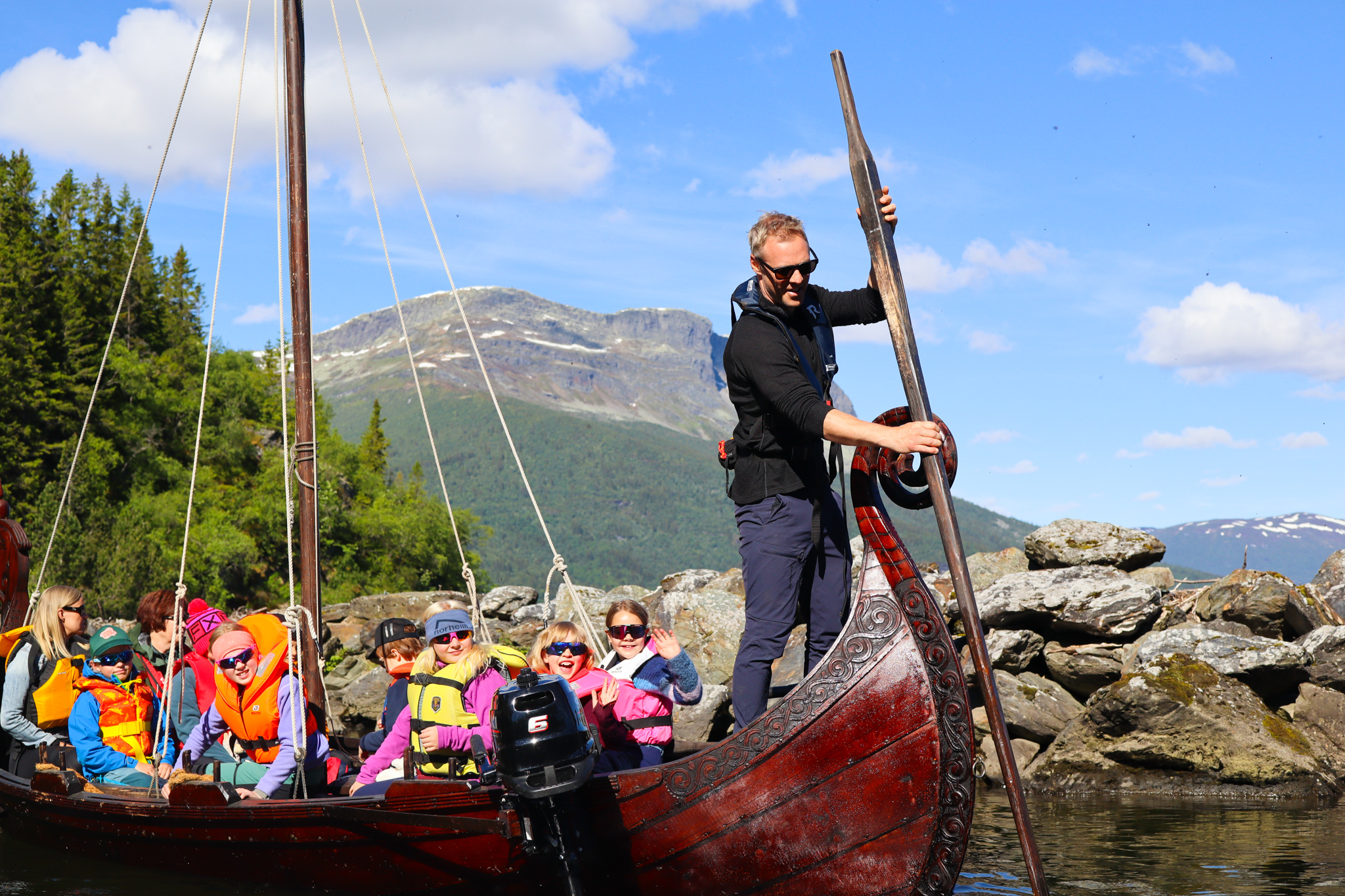 Etter omvisning i Riddarstøga var det tid for lunsj og leik, og jammen tittet sola varmt fram! Så var det tid for retur, og nok ein gong skulle Tor og Odin skysse ivrige ungar over blikkstille Vangsmjøsa. Med sang, latter og blide fjes la vikingskipa til ved VBU, og alle var skjønt enige om at dette hadde vore ein fin, fin dag!