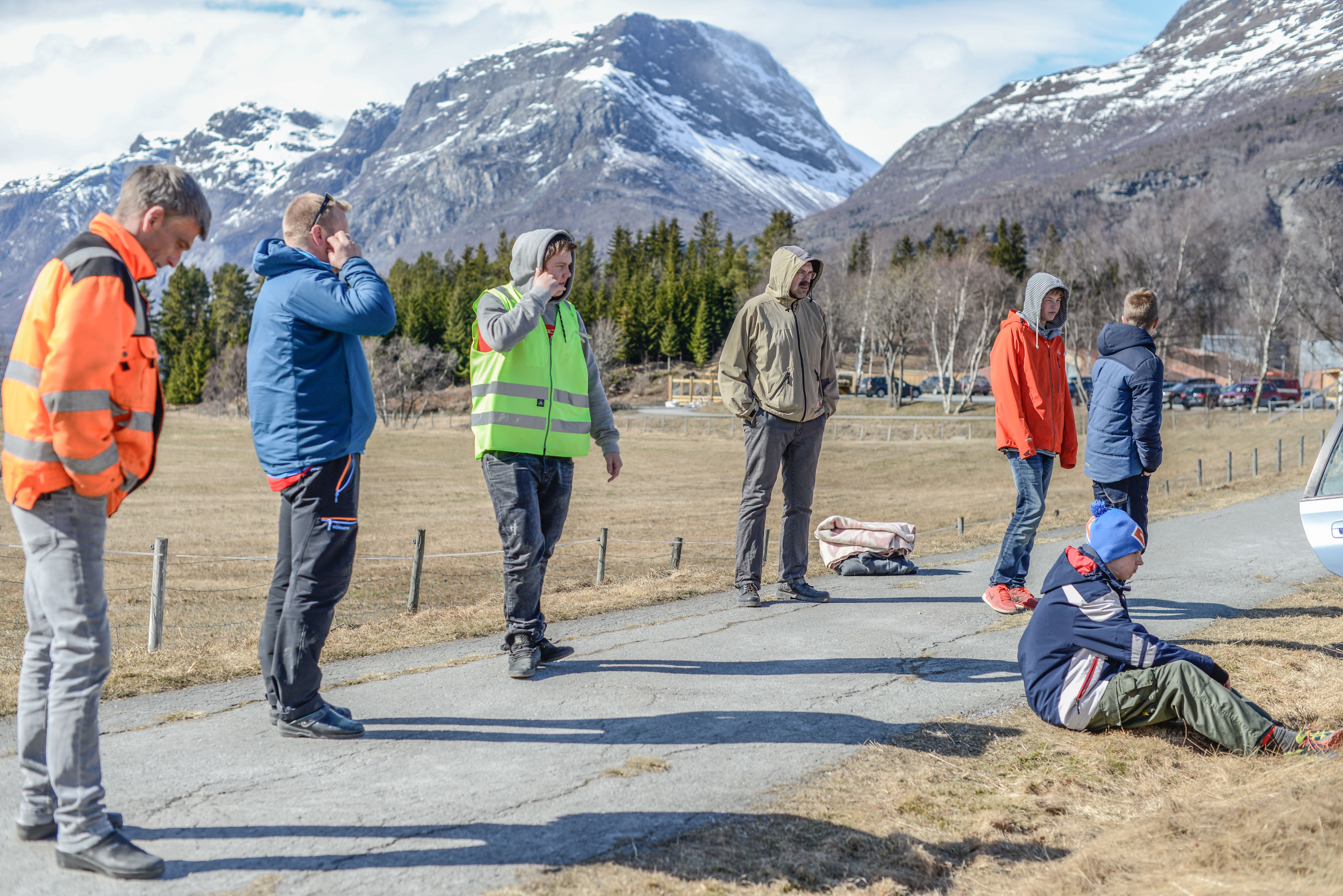 – Under den praktiske øvinga er dei delt i grupper på fire. Her er fire som har vore med i ulykka, fire som kjem til for å hjelpe og fire som observerer, fortel Tor Erik Berge.
