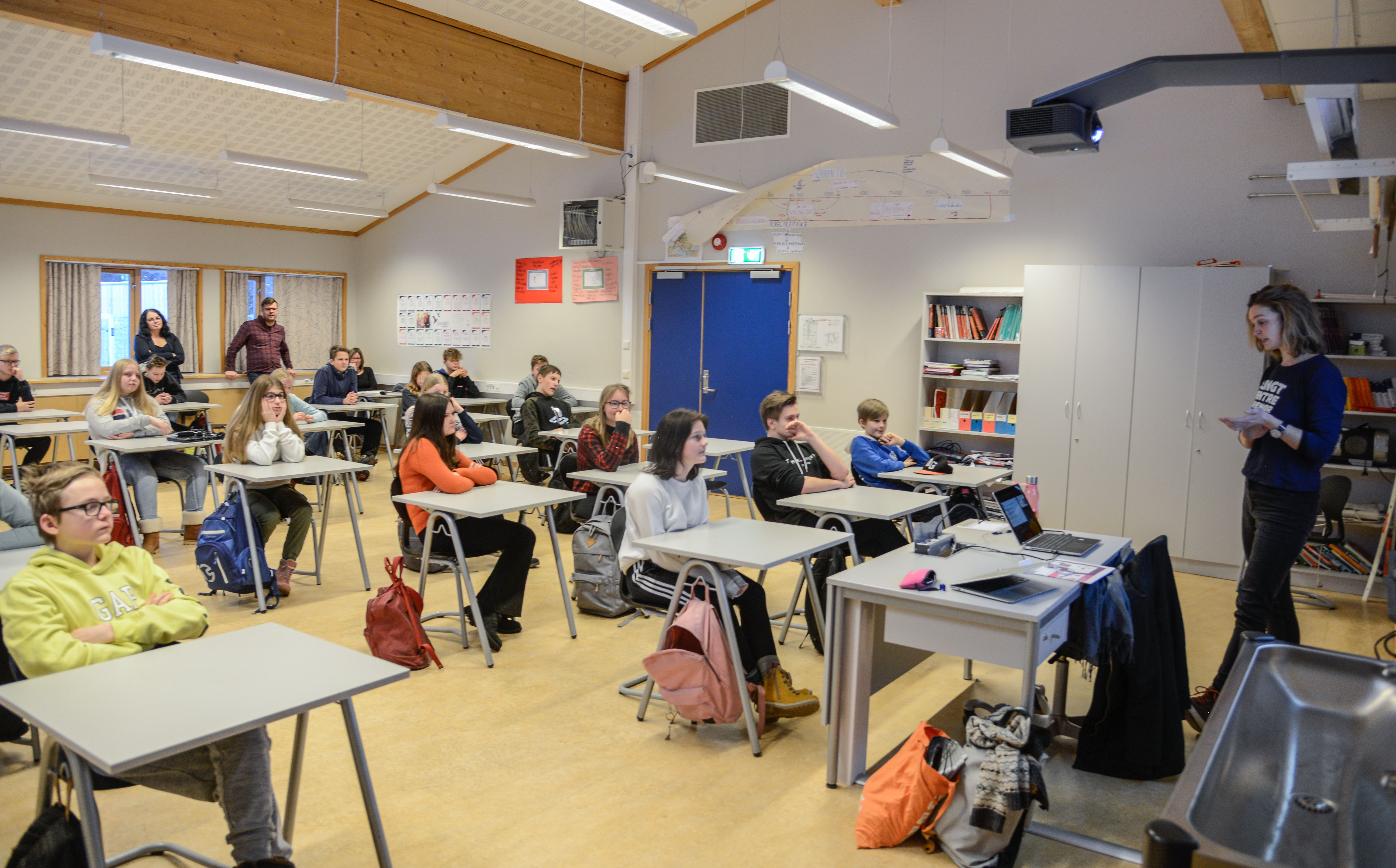 Ho var på plass hjå niande klasse på Vang barne- og ungdomsskule fredag morgon for å køyre i gang det nye opplegget i Vang.