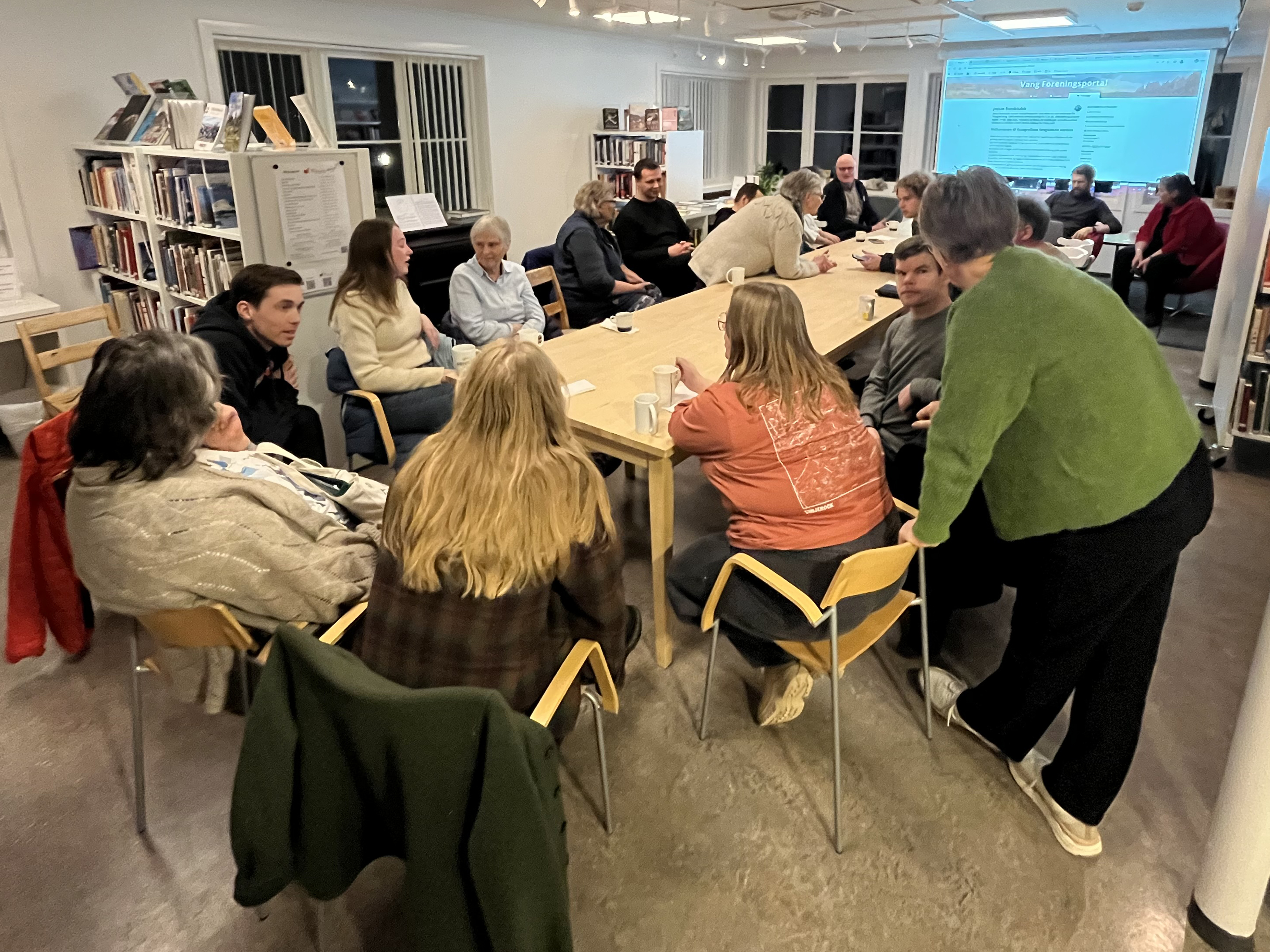 Me tok oss god tid på foreningsportalen, med oversikt over alle frivillige lag og kalenderen som viser kva som skjer i Vang. Her fekk fleire seg ein «aha-oppleving» over aktivitetar dei ikkje viste om! Me fekk også tilbakemelding på aktivitetar som mangla, så me jobbar vidare med dei frivillige laga for å få alt som skjer inn i kalenderen. Alle var einige i at det skjer mykje i Vang, og som nyinnflytta Wendy frå Nederland sa;