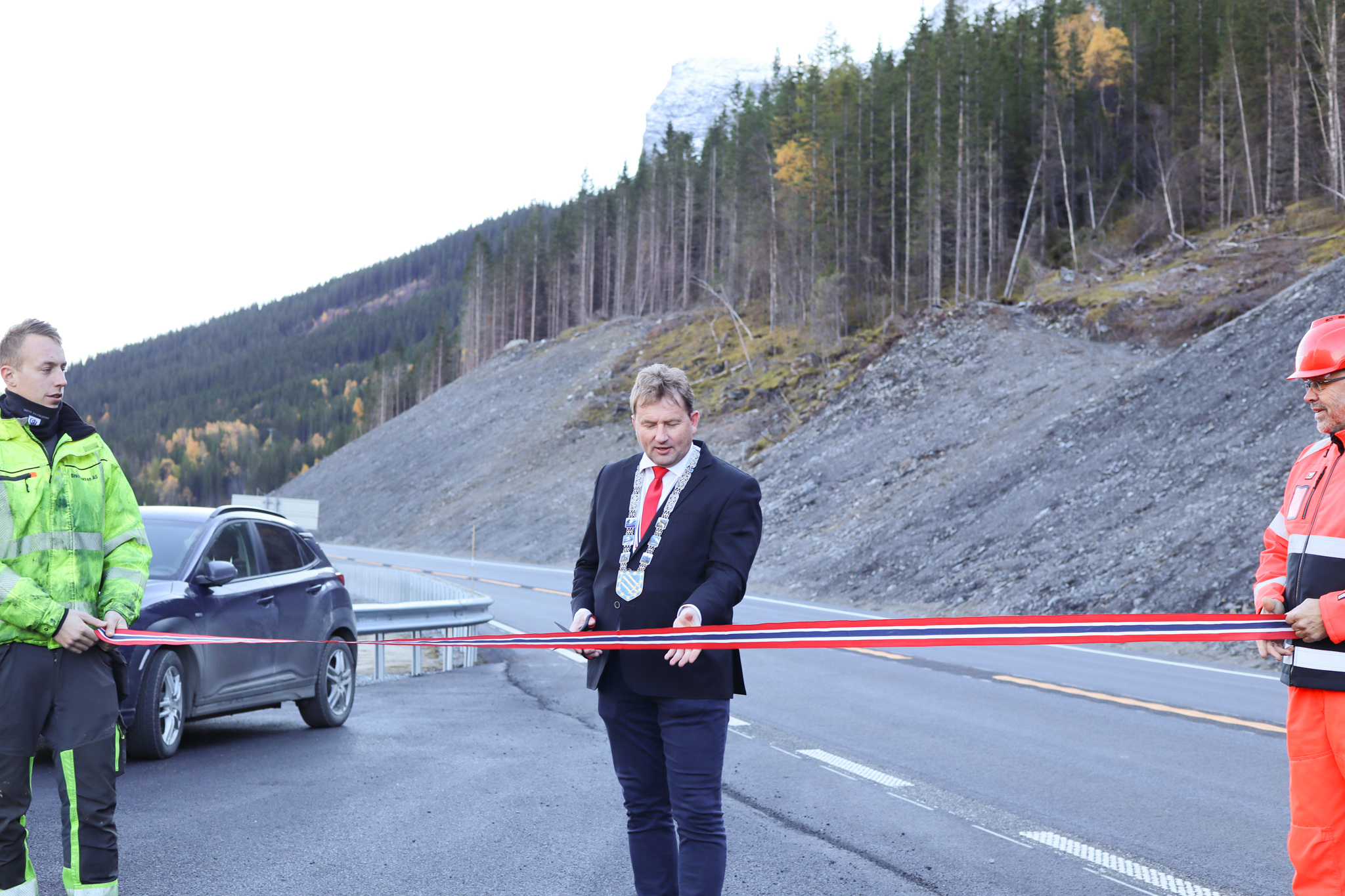 Opninga av vegstrekninga vart i dag markert ved kjettingplassen i Øye, der representantar frå både Statens vegvesen og Brødrene Dokken AS stilte. I tillegg var sjølvsagt ordførar i Vang, Vidar Eltun på plass for å høgtideleg klippe snora.