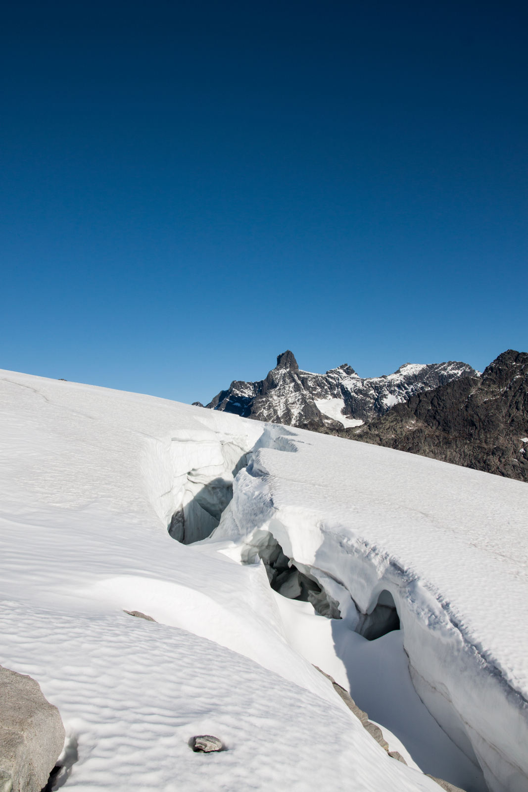 Med ein viss skepsis går me laus på oppstigninga med litt ulike ruteval – og dermed litt ulike utfall. Men etter ein del prøving og feiling kjem me oss omsider opp til brekanten, sjølv om det tok meir tid enn planlagt.