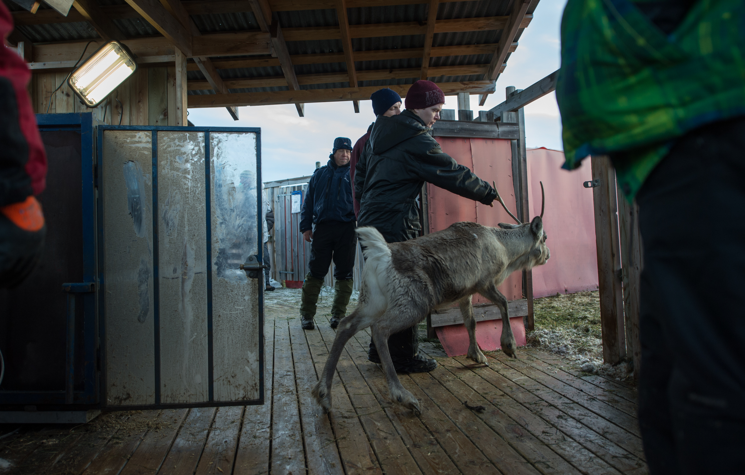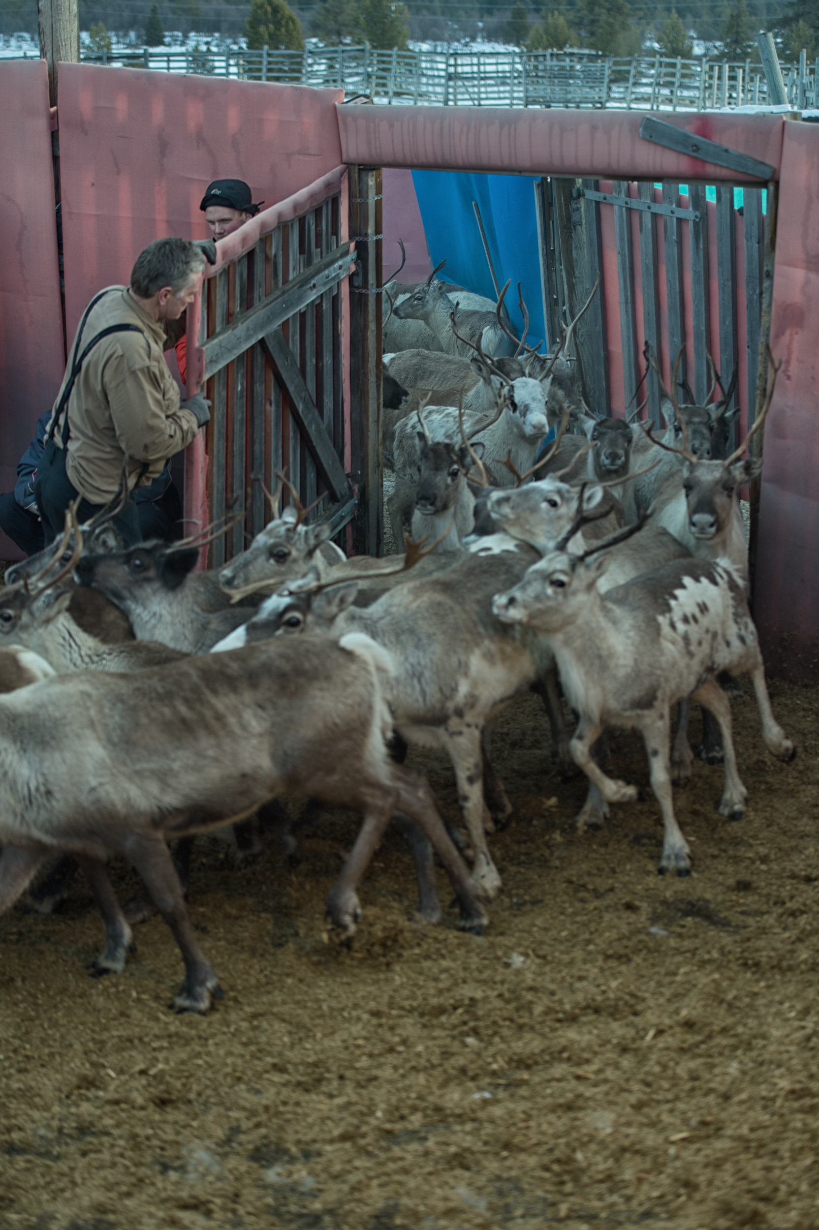 Reindyrsimla dyttes høyst ufrivillig inn i vekta. Etter en kjapp veiing går hun videre inn til slakt og de evige vidder. Filefjell Reinlag har 2000 dyr som skal slaktes i løpet av første halvdel av desember, det går i høyt tempo og krever god innsats fra alle involverte.